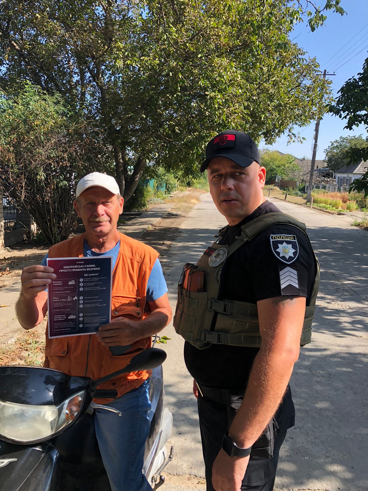 У населених пунктах Херсонського та Бериславського районів дільничні офіцери поліції, працівники ювенальної превенції та групи реагування патрульної поліції проводять профілактичні бесіди з мешканцями та пояснюють, як протидіяти розповсюдженим видам шахрайства.
