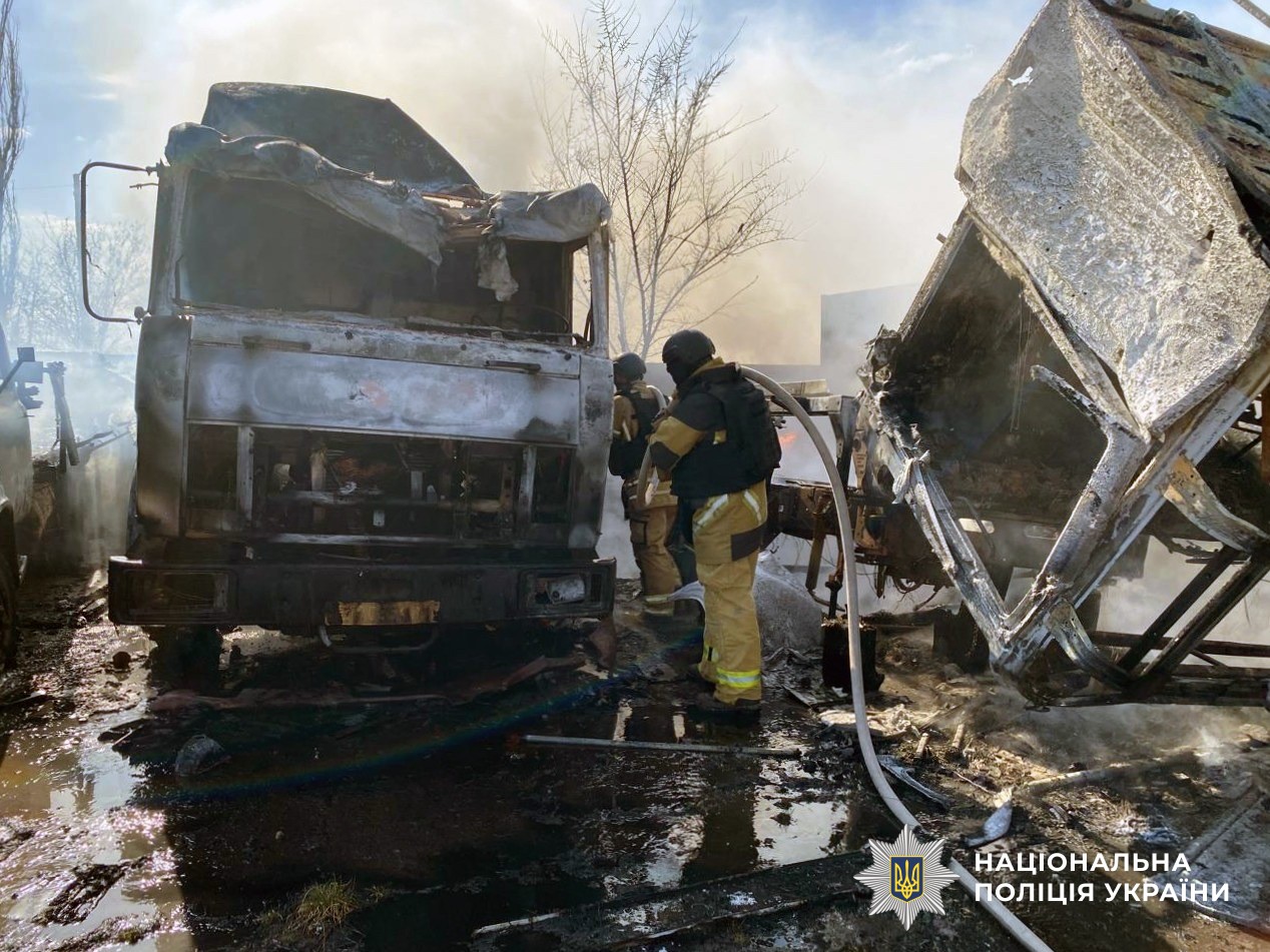 В результаті ударів дронами типу «FPV» пошкоджено приватний будинок у Широкій Балці, приватний будинок й автомобіль в Українці, п’ять вантажних автомобілів у Нововоронцовці.