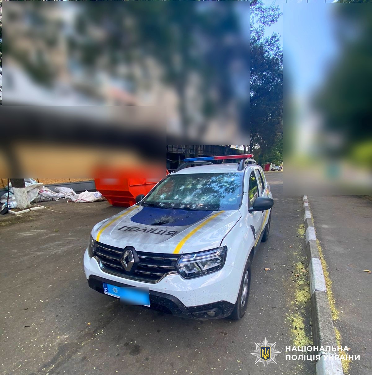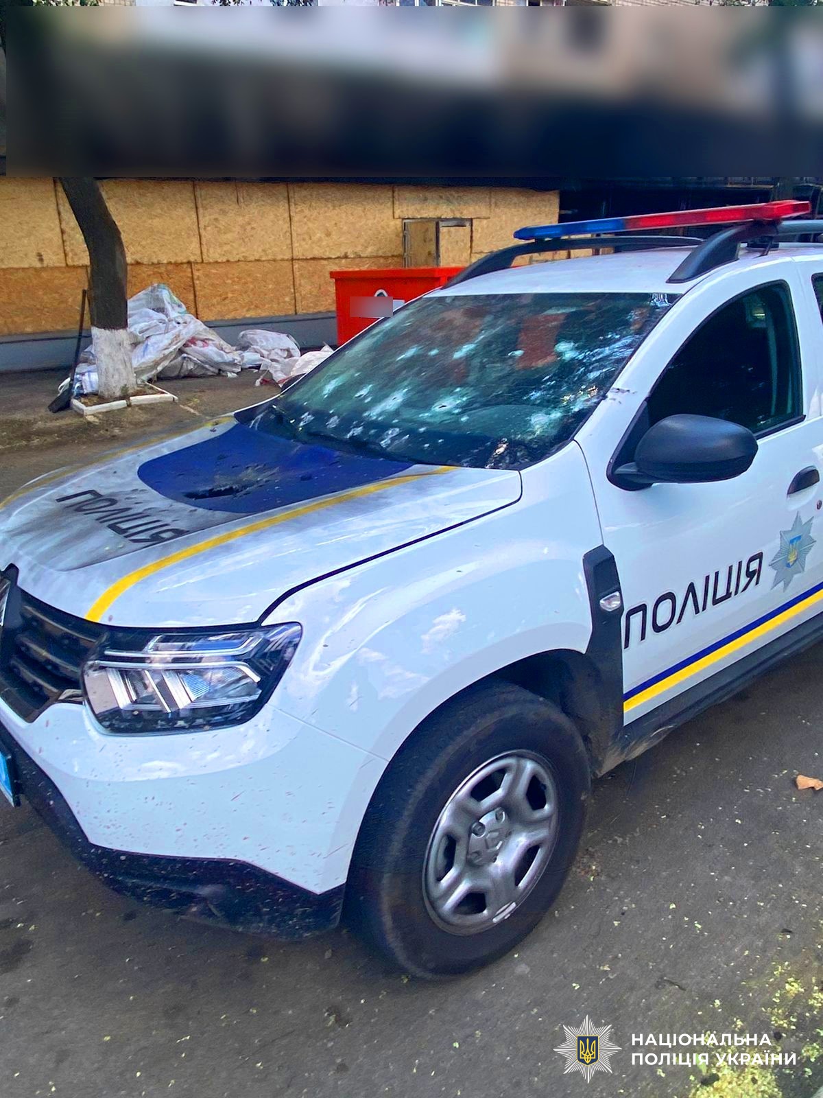 Пошкоджень зазнали вісім приватних будинків, два цивільних та один службовий автомобіль поліції.