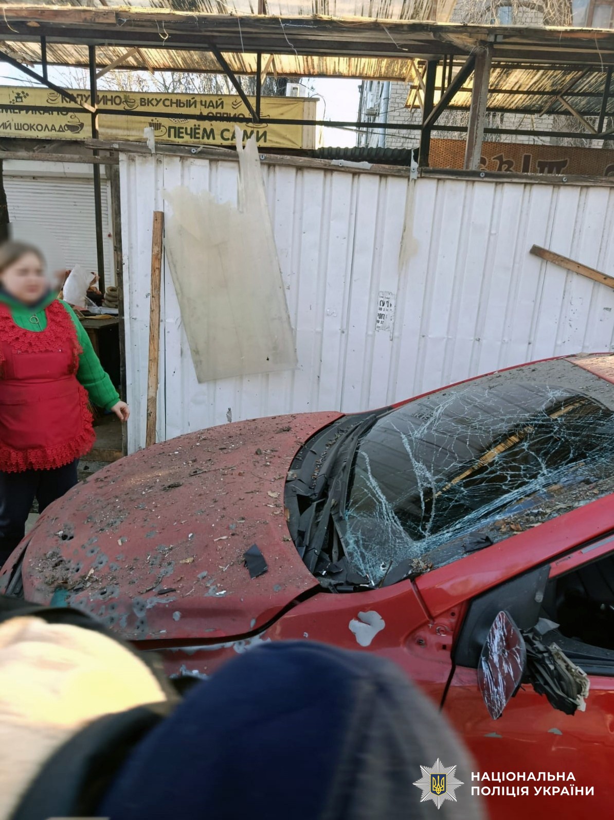 Вранці у Центральному районі через скид боєприпасу з БпЛА 57-річний чоловік отримав вибухову травму, вогнепальне уламкове поранення черевної порожнини. Зазнав пошкоджень автомобіль.