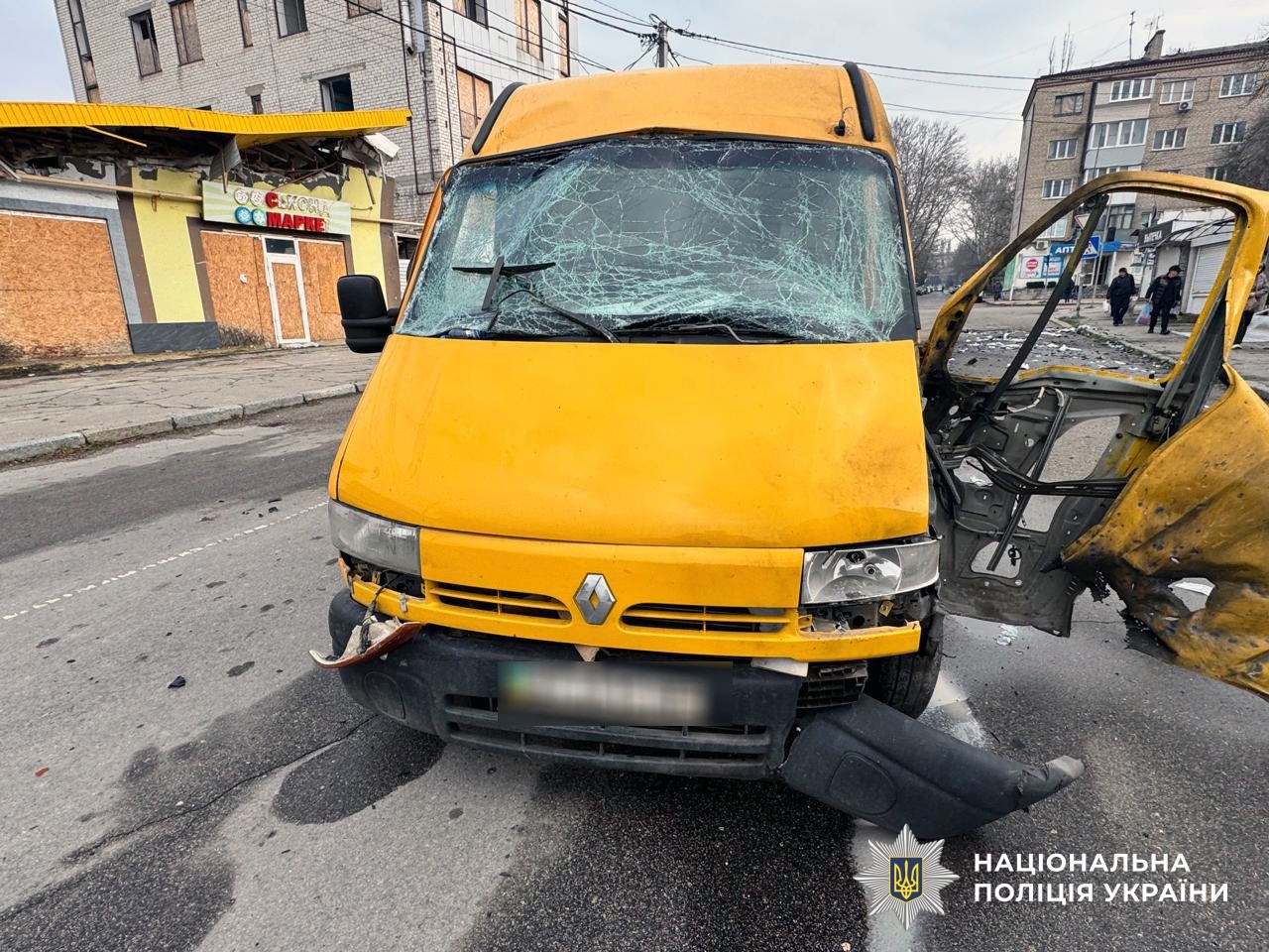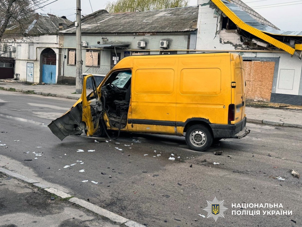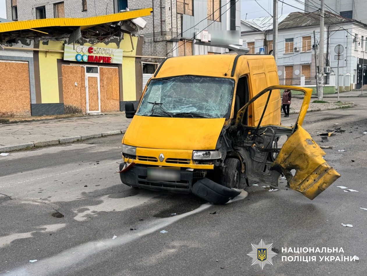 У Центральному районі ворожий FPV-дрон атакував мікроавтобус, який перевозив продукти. Внаслідок удару 61-річний водій отримав вибухову та черепно-мозкову травми, контузію, поранення обличчя, живота й ноги. Транспортний засіб пошкоджено.
