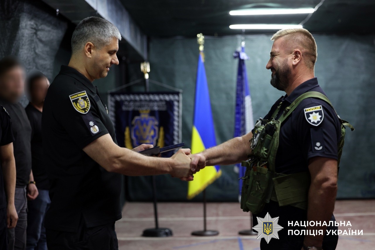 Відзнаки Президента України «За оборону України», нагрудні знаки «За безпеку народу», подяки Національної поліції України та Знаки Пошани херсонським поліцейським вручив начальник Головного управління Національної поліції в Херсонській області Роман Козьяков. Він подякував кожному за службу, наголосивши, що нині працівники спецпідрозділів поліції стоять пліч-о-пліч із воїнами ЗСУ на передовій, боронять українські землі від окупантів та мають безцінний бойовий досвід.