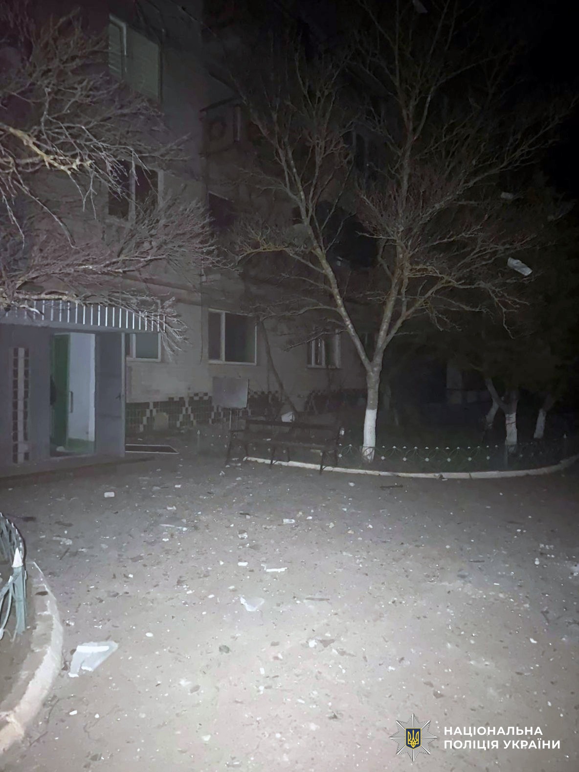 Кількома ударними безпілотниками росіяни атакували Дар’ївку. Двічі били по багатоквартирному будинку, який пошкоджено.