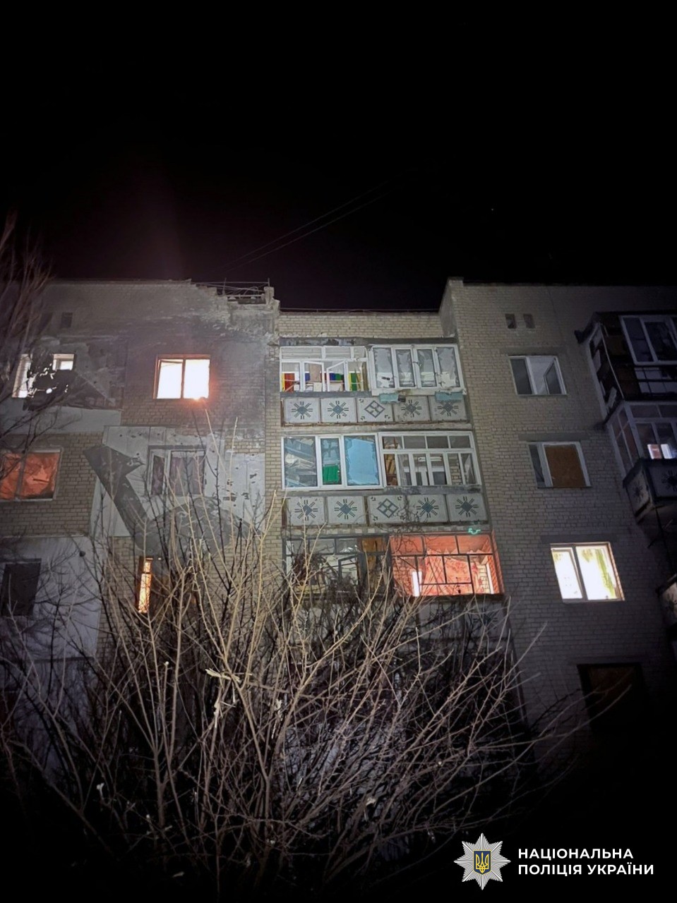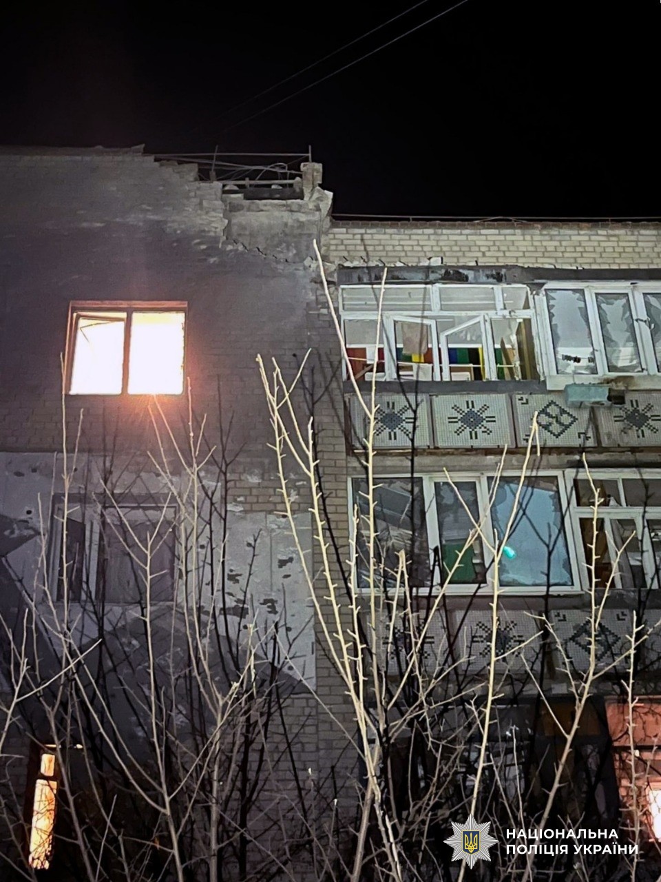 Ввечері окупаційні війська обстріляли мікрорайон із реактивних систем залпового вогню. Уламкові поранення ноги дістав 23-річний чоловік. Зазнали пошкоджень два багатоквартирні будинки, три службові автомобілі поліції та дві цивільні автівки.