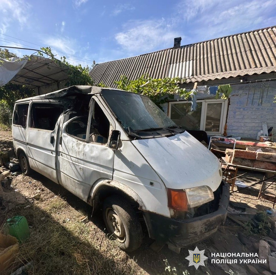 Подальшими скидами з БпЛА на житлові квартали пошкоджено два автомобілі. Ще один автомобіль пошкоджено в результаті артилерійського обстрілу.