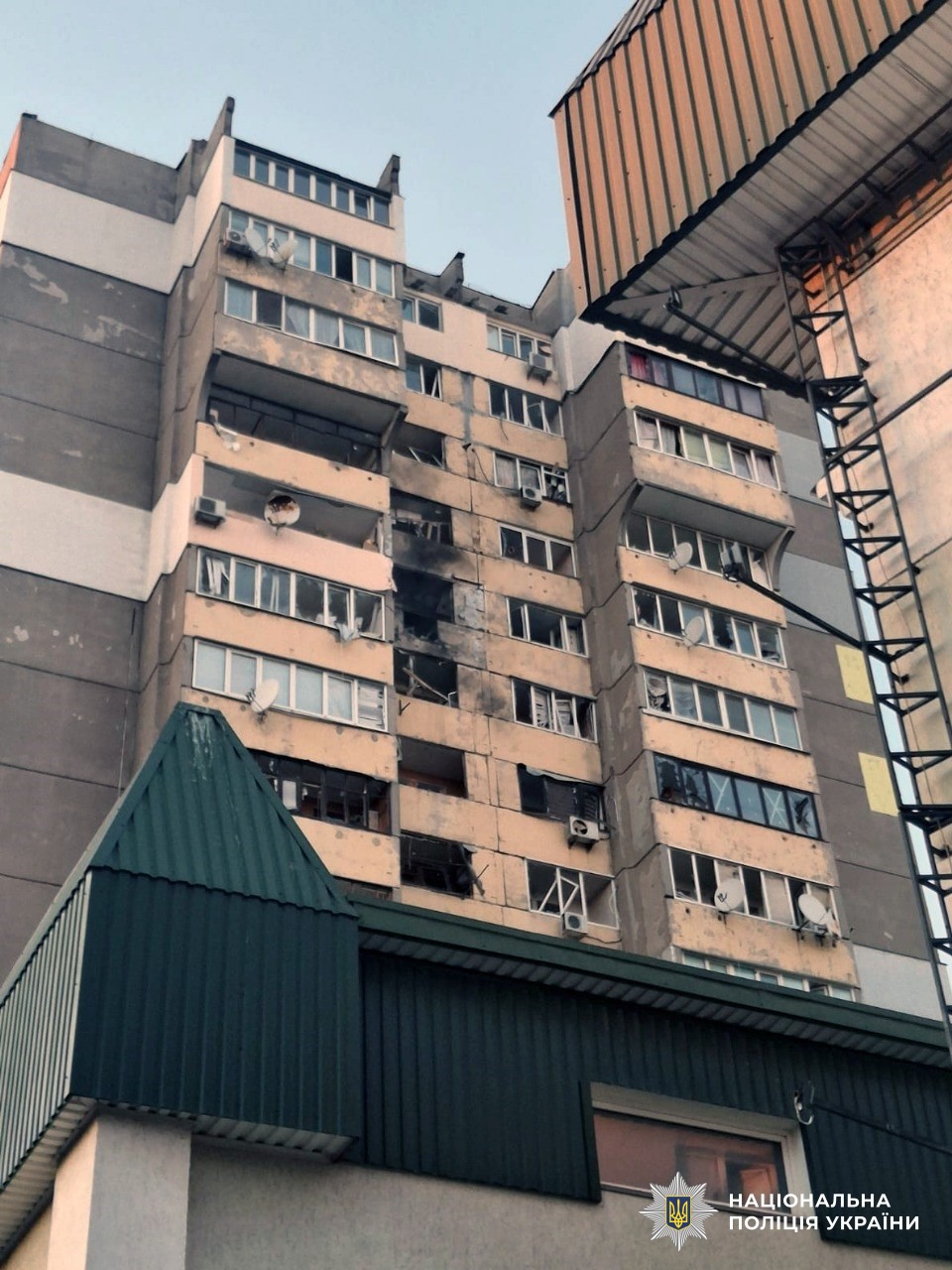 Ввечері росіяни здійснили підступну атаку ударним дроном по багатоквартирному будинку в мікрорайоні «Північний». Внаслідок потужного вибуху значно пошкоджено квартири. Також зазнала пошкоджень багатоповерхівка, розташована поруч. Медична допомога знадобилася чотирьом людям. З тяжкими травмами ушпиталили двох жінок віком 63 та 65 років. У них вибухові та черепно-мозкові травми, контузії, уламкові поранення майже всіх частин тіла. У 33-річного чоловіка діагностували мінно-вибухову травму, контузію, різані рани голови, тулуба й кінцівок. Постраждав і 34-річний поліцейський, він дістав мінно-вибухову травму, контузію.