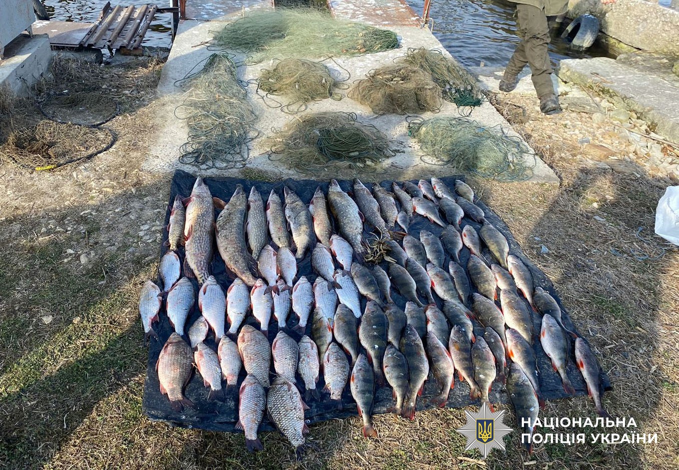 В плавзасобі поліцейські виявили 7 браконьєрських сіток загальною довжиною 368 метрів, а також рибу: тарань, окуні, щуки, карасі, а також раки. Сума збитків, завданих державі, складає 444888 гривень.