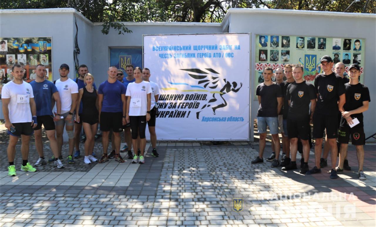 Сьогодні, 28 серпня, напередодні Дня пам’яті захисників України, які загинули в боротьбі за незалежність, суверенітет і територіальну цілісність України, в Херсоні відбувся патріотичний забіг з легкої атлетики «Шаную воїнів, біжу за героїв України». Вкотре вже до традиційного Всеукраїнського забігу приєдналась й команда обласної поліції на чолі з головним поліцейським Херсонщини Олександром Прокудіним.