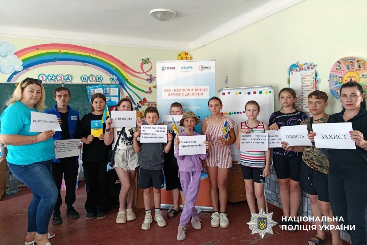 У Великій Олександрівці ювенальні поліцейські разом із представниками громадської організації «Поруч» провели для місцевих хлопчиків і дівчат пізнавально-інформаційний захід «Конституція в моєму житті».