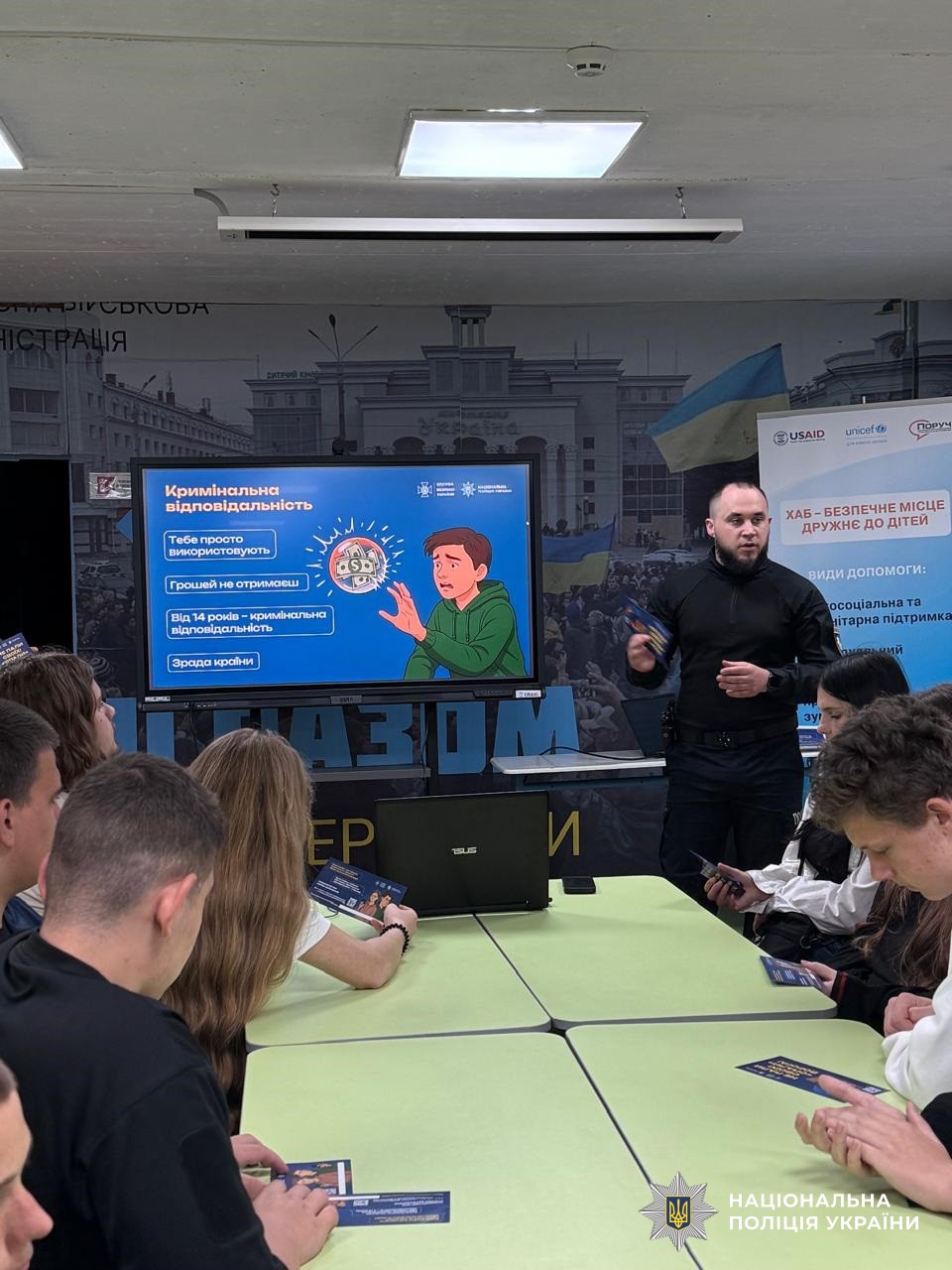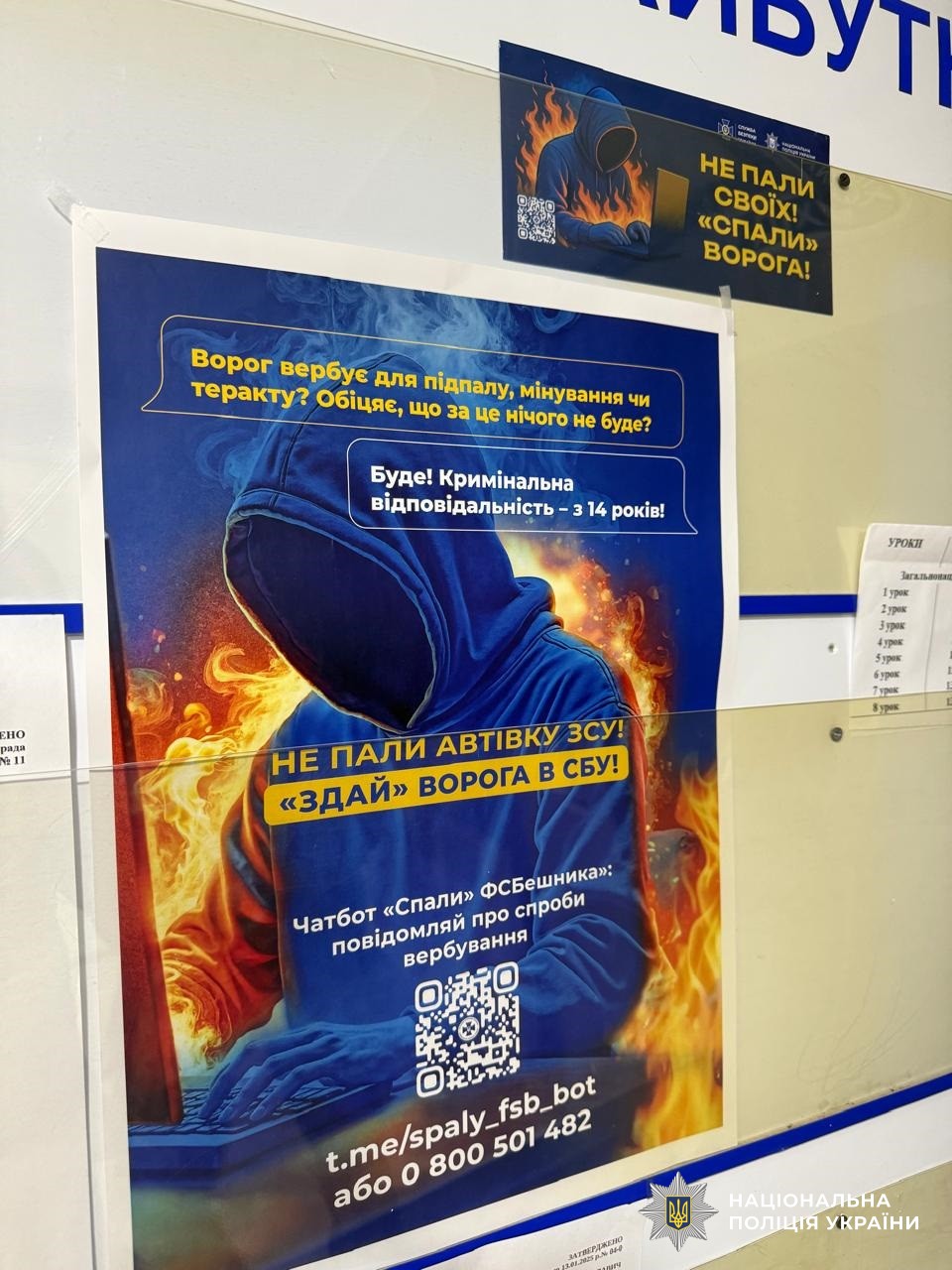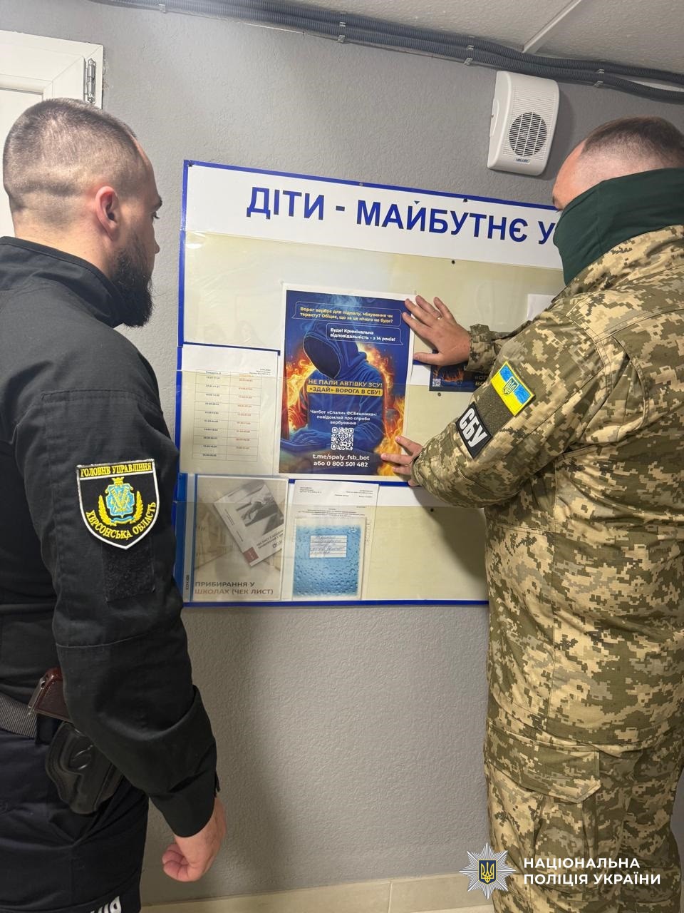 Дітям роздали інформаційні листівки з чіткими інструкціями, як діяти у випадку, якщо хтось намагається їх завербувати. Також поліцейський і співробітник СБУ поінформували школярів про спеціальний чат-бот «спали ФСБшника», через який можна повідомити про підозрілі акаунти, заклики чи контакти. Це ще один інструмент захисту, що допомагає оперативно реагувати на загрози.