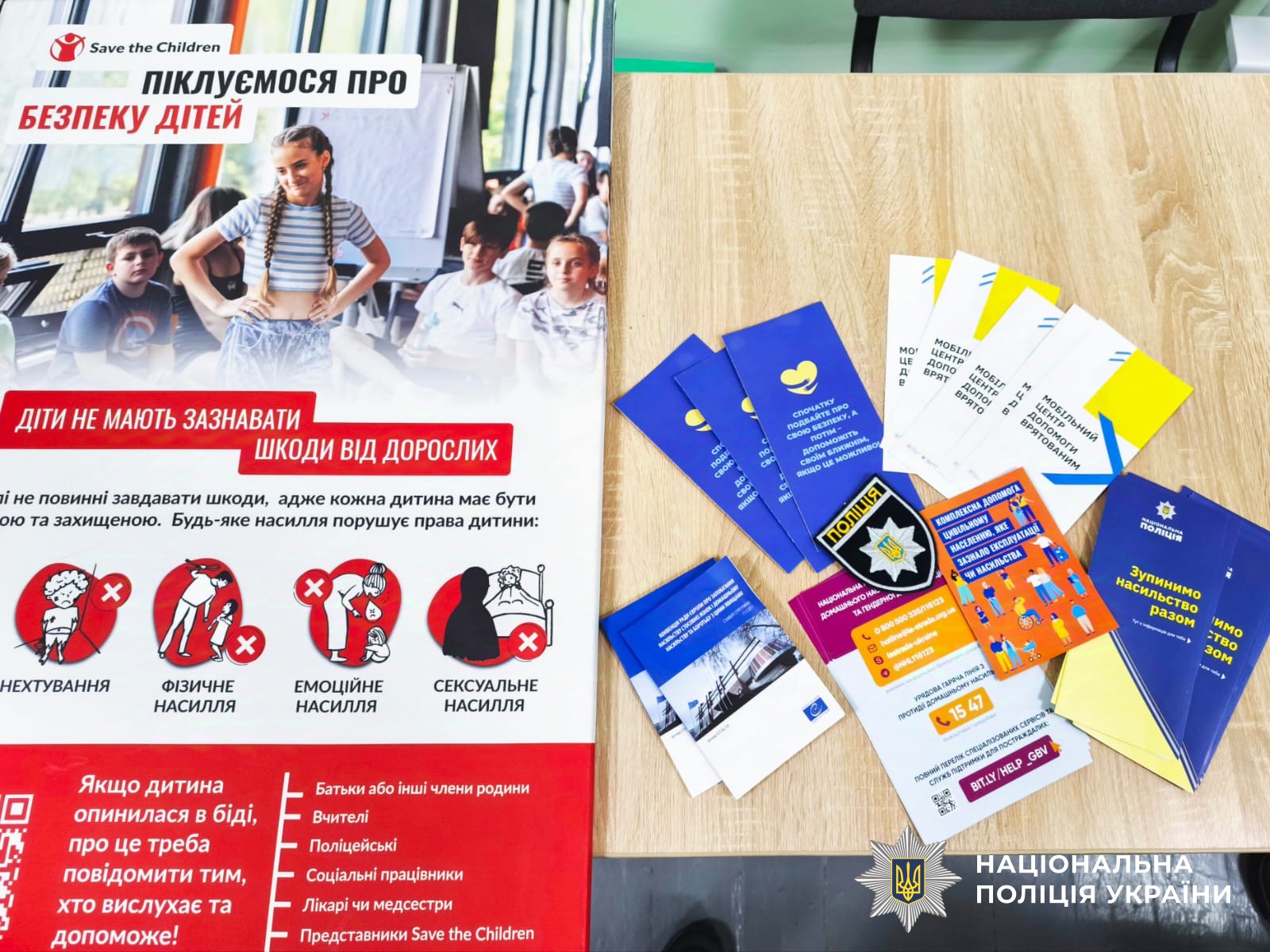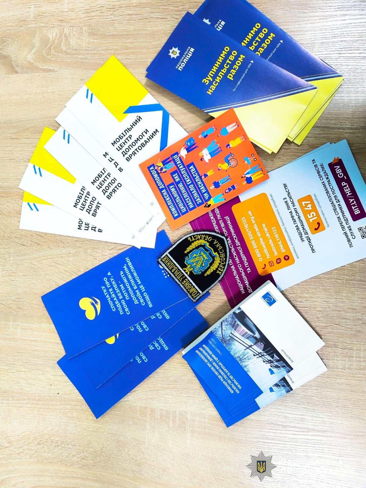 Під час заходу поліцейські ознайомили учнів з інформаційними буклетами та листівками, в яких вказані номера телефонів спеціальних служб, куди вони можуть звернутися по допомогу в разі необхідності. Та закликали дітей ніколи не замовчувати будь-які випадки насильства, а негайно повідомляти про них до поліції за номером 102.