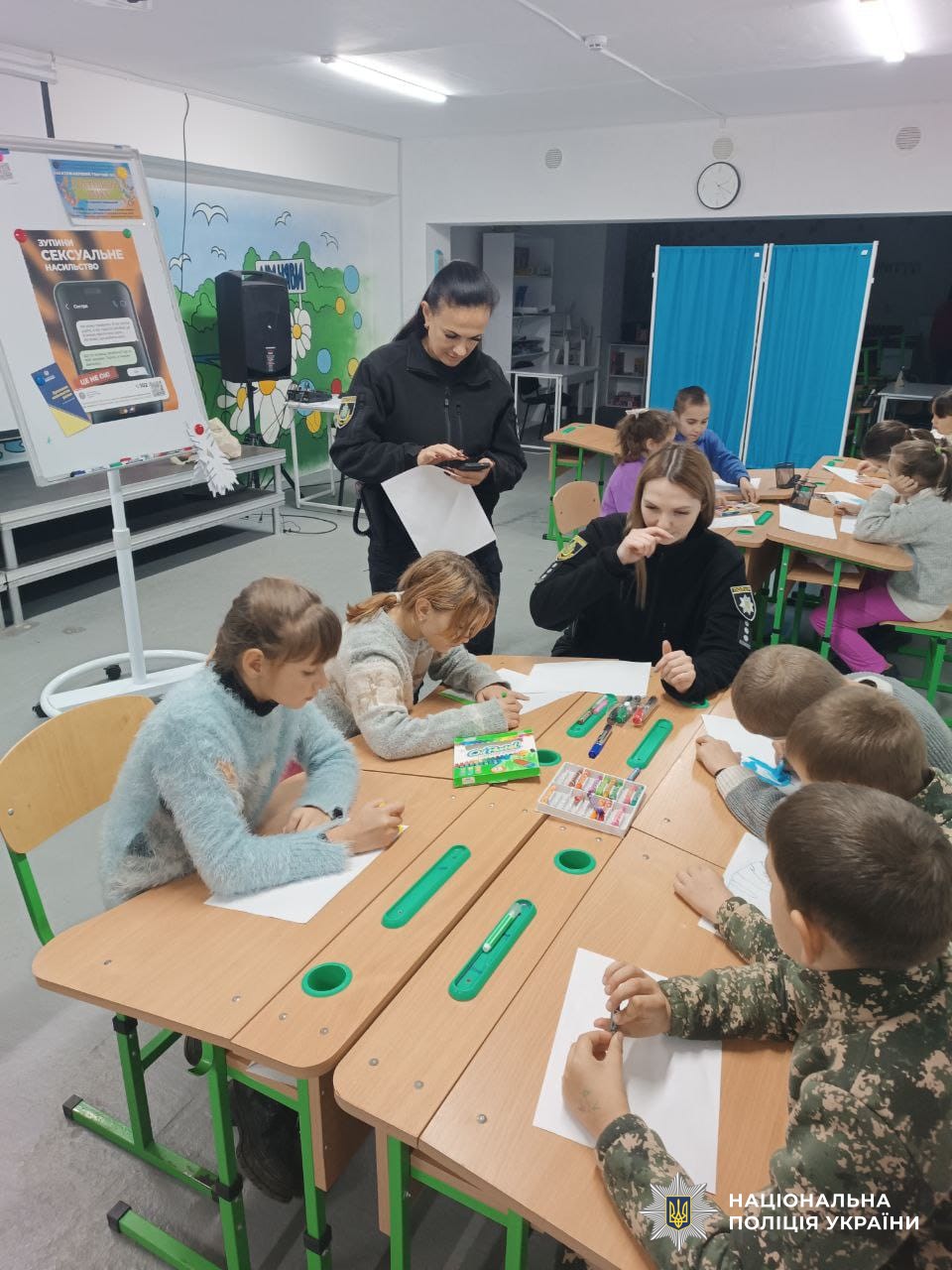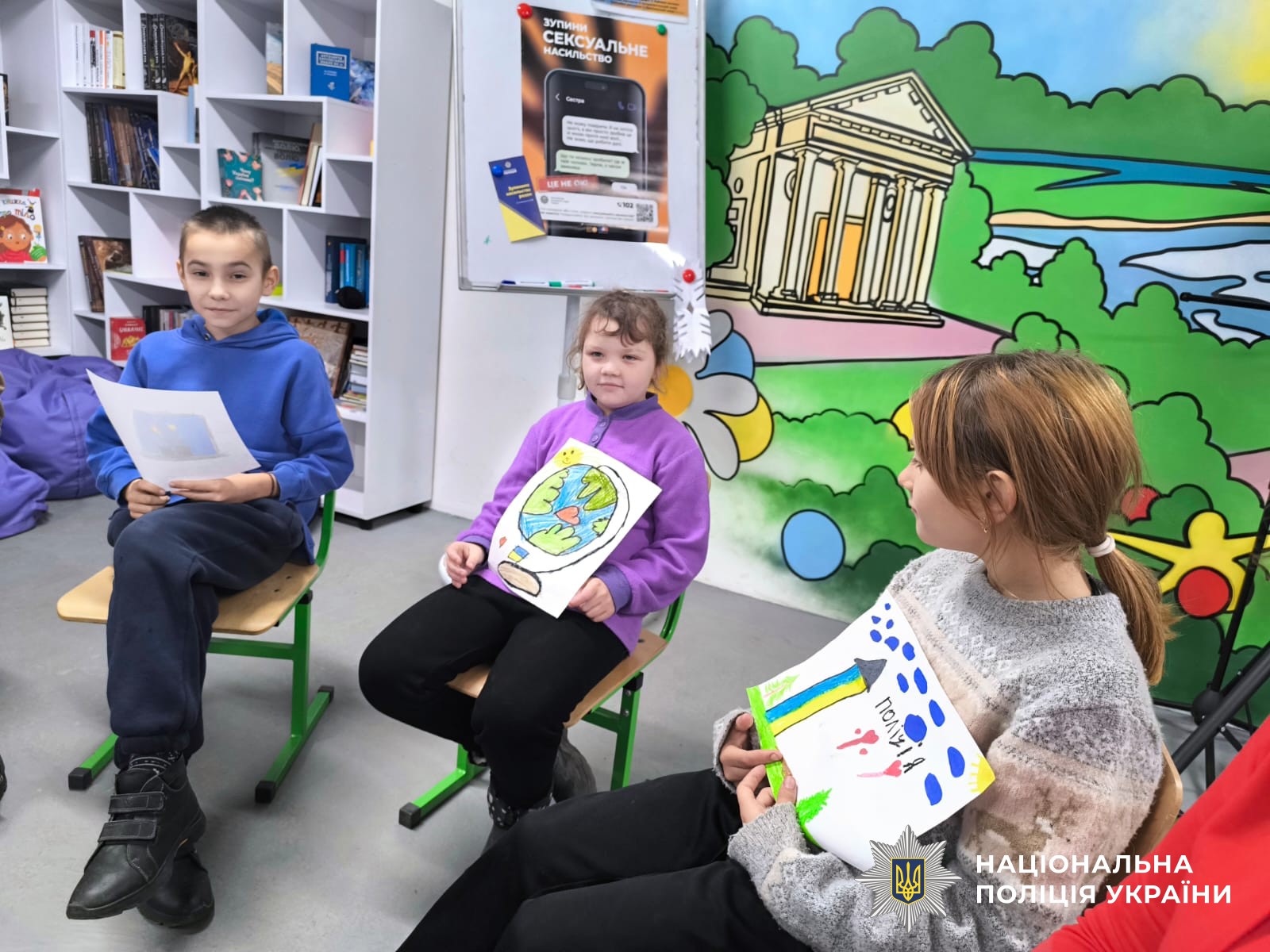 Хлопчики та дівчата за допомогою малюнків показали, як вони розуміють різні види насильства, та ділилися з поліцейськими своїми думками, в який спосіб можна його зупинити.