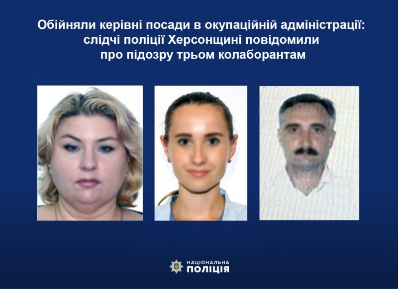 Обійняли керівні посади в окупаційній адміністрації: слідчі поліції Херсонщині повідомили про підозру трьом колаборантам