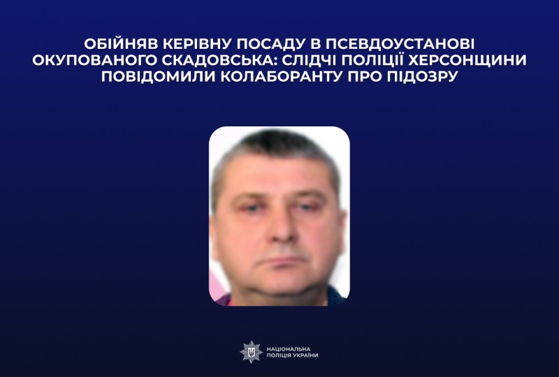 Обійняв керівну посаду в псевдоустанові окупованого Скадовська: слідчі поліції Херсонщини повідомили колаборанту про підозру