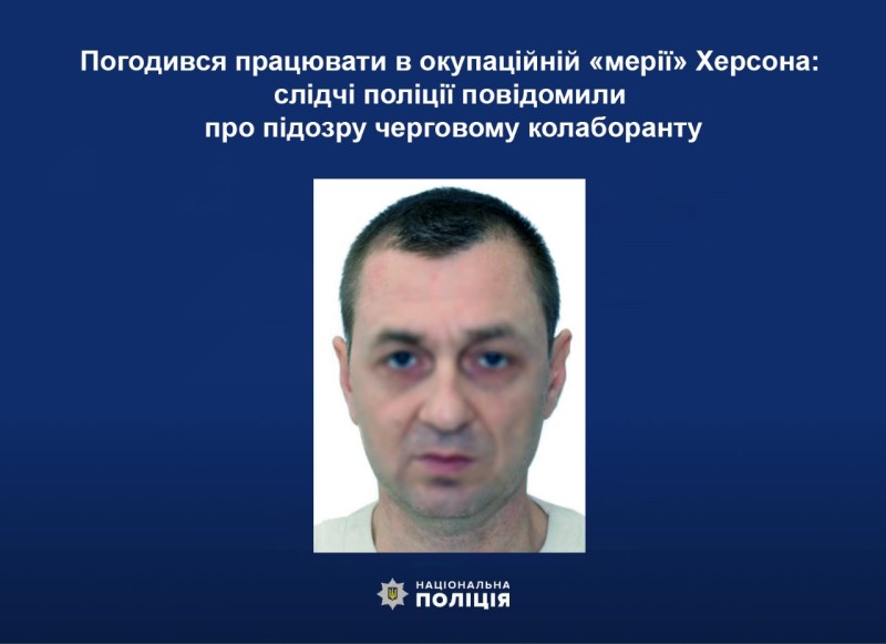 Під час окупації Херсона місцевий житель добровільно погодився співпрацювати з представниками країни-агресора. Він очолив один із «відділів» у міській окупаційній «адміністрації». Нині фігуранту заочно повідомлено про підозру в причетності до колабораційної діяльності.
