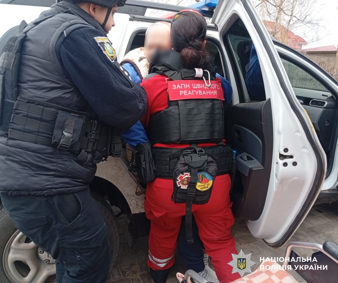 За підтримки представників сільської ради до евакуації долучилися працівники поліції. Поліцейський офіцер громади та начальник одного із секторів Херсонського районного управління поліції оперативно прибули на допомогу. Вони обережно допомогли людям сісти до службового автомобіля та вивезли їх з небезпечної території.