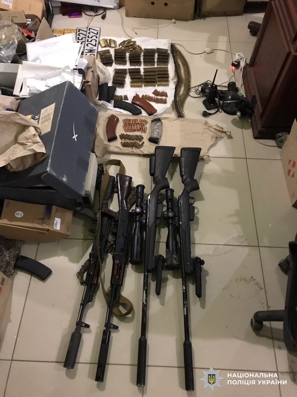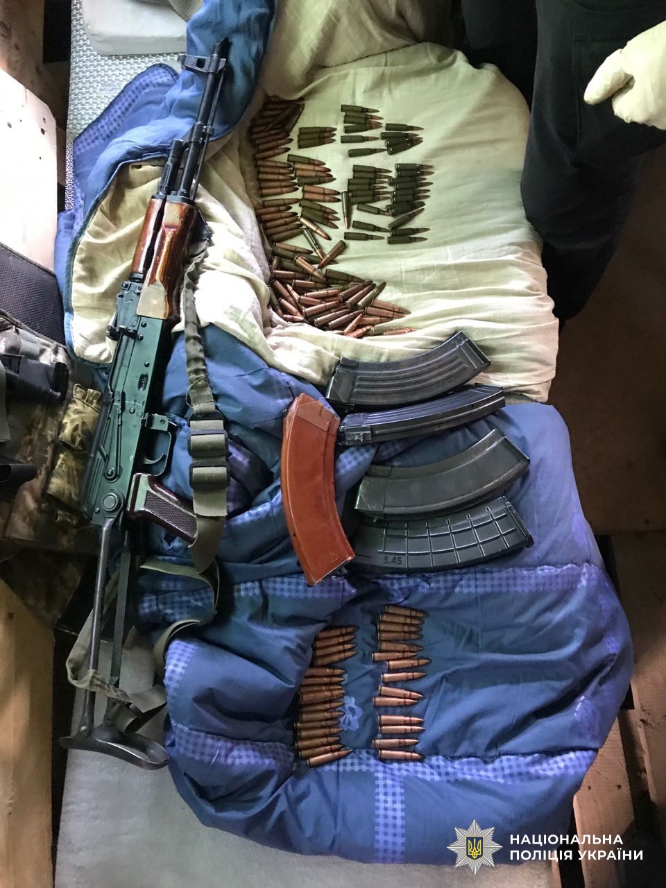 У фігурантів провели обшуки, під час яких вилучено 7 одиниць автоматичної зброї, 2 одиниці нарізної, 8 гранат, 1 гранатомет, 2 артилерійських снаряди 30 калібру, 7 одиниць холодної зброї, понад 3500 набоїв різного калібру. Були вилучені засоби зв'язку, техніка, чорнові записи, документи, 2 транспортні засоби, на яких переміщувалися учасники групи, а також викрадене майно потерпілих.