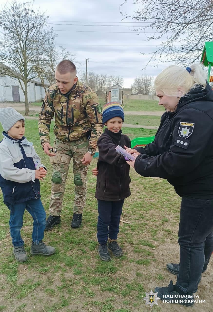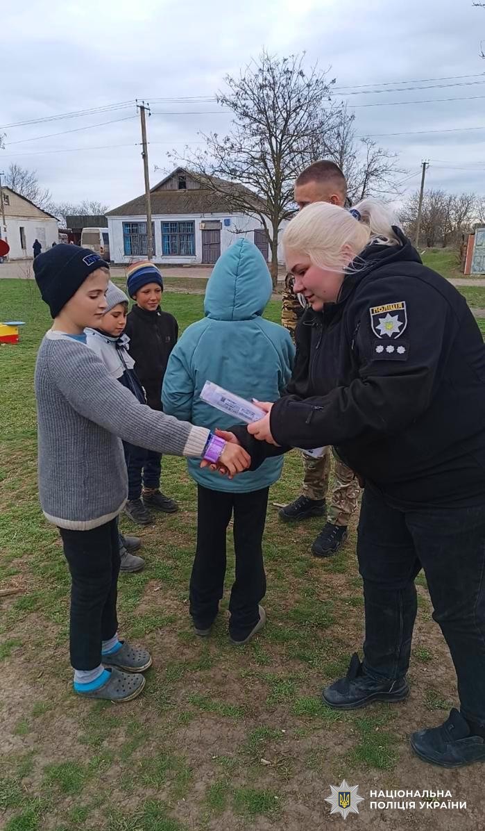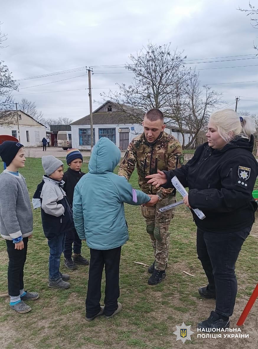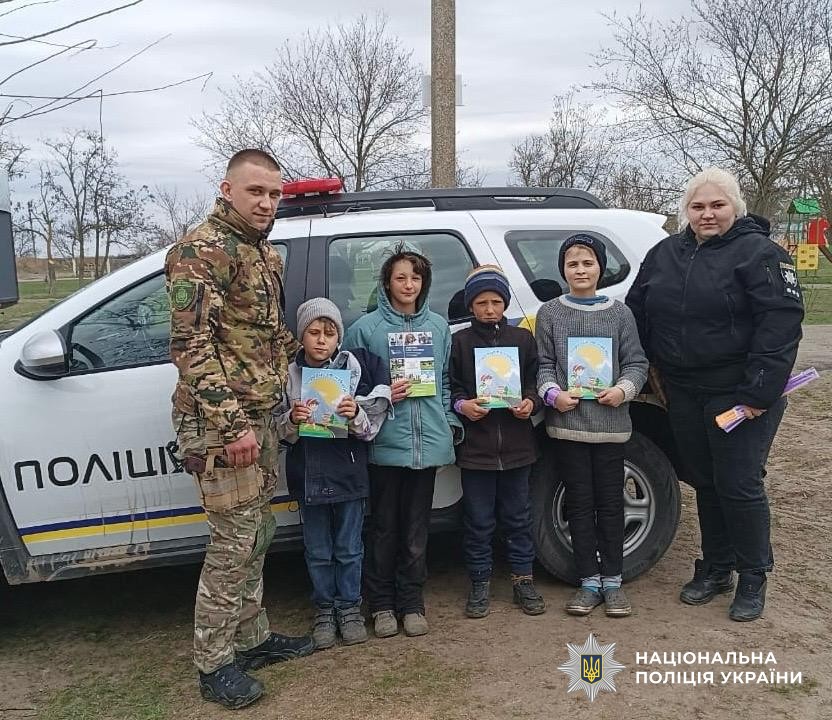 Працівники ювенальної превенції відвідали деокуповану Новорайську громаду, щоб нагадати найменшим її жителям правила дорожнього руху та прості правила безпеки. Спільно з місцевим поліцейським офіцером громади ювенали повторили з дітками основні Правила дорожнього руху, як правильно переходити проїжджу частину, наголосили на необхідності використання світловідбиваючих елементів одягу в темну пору доби.