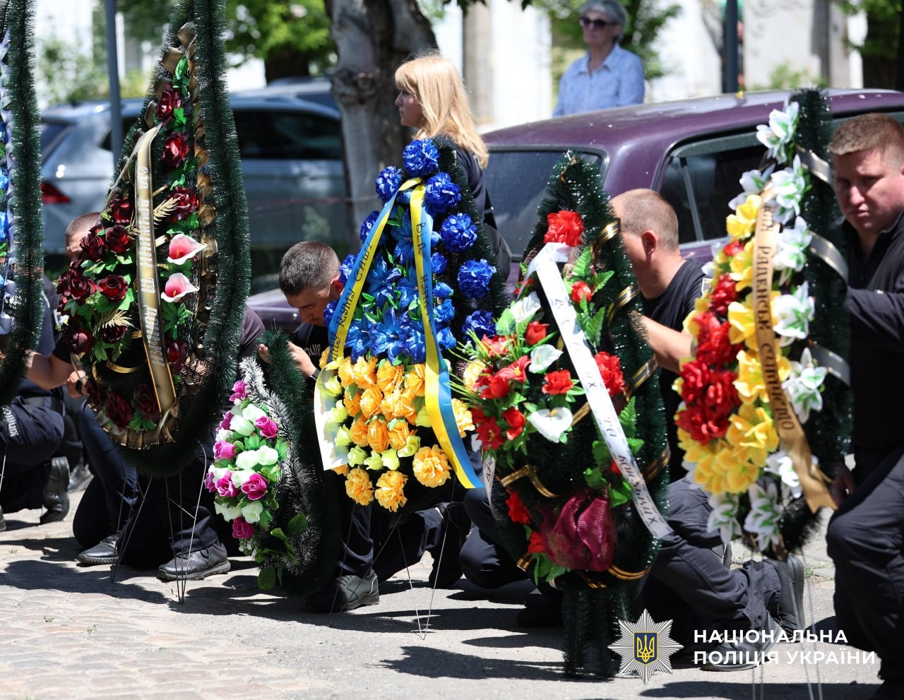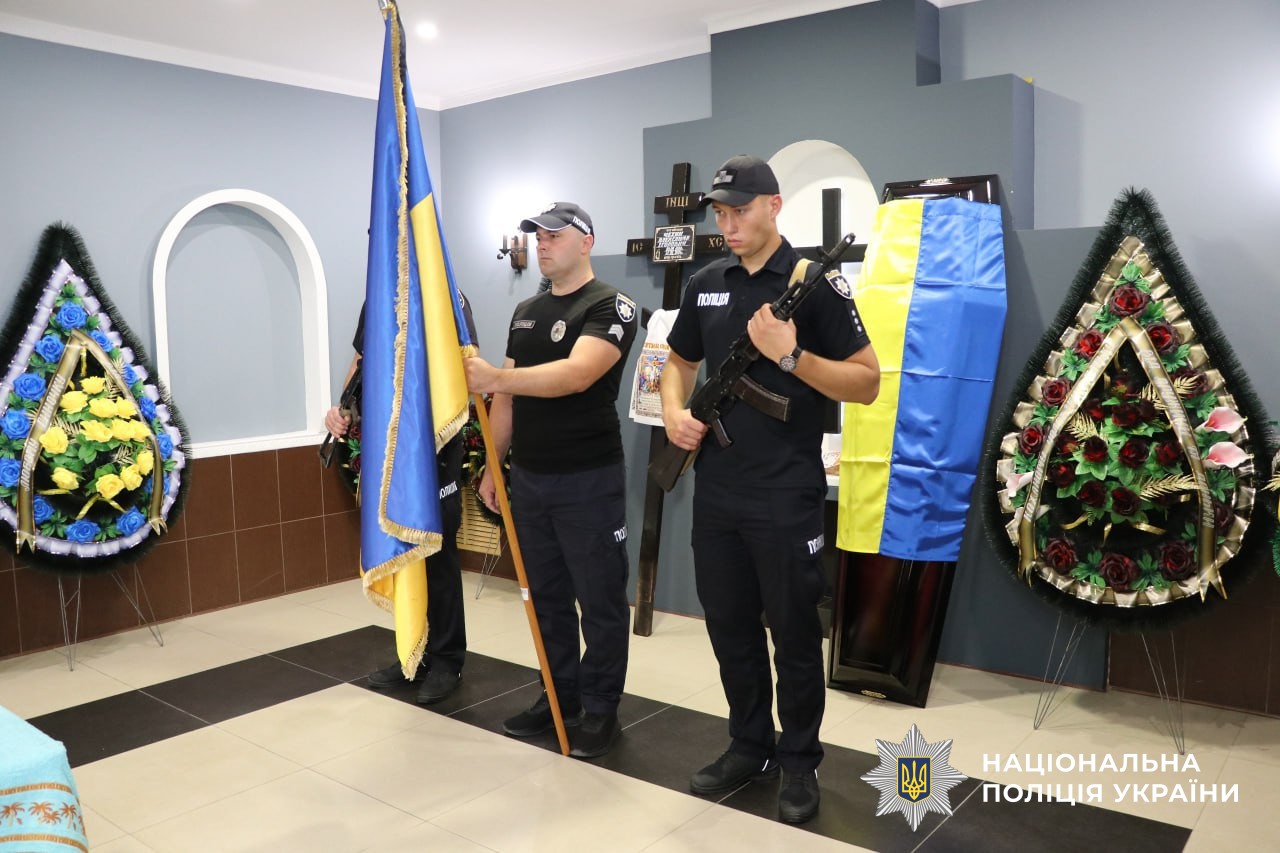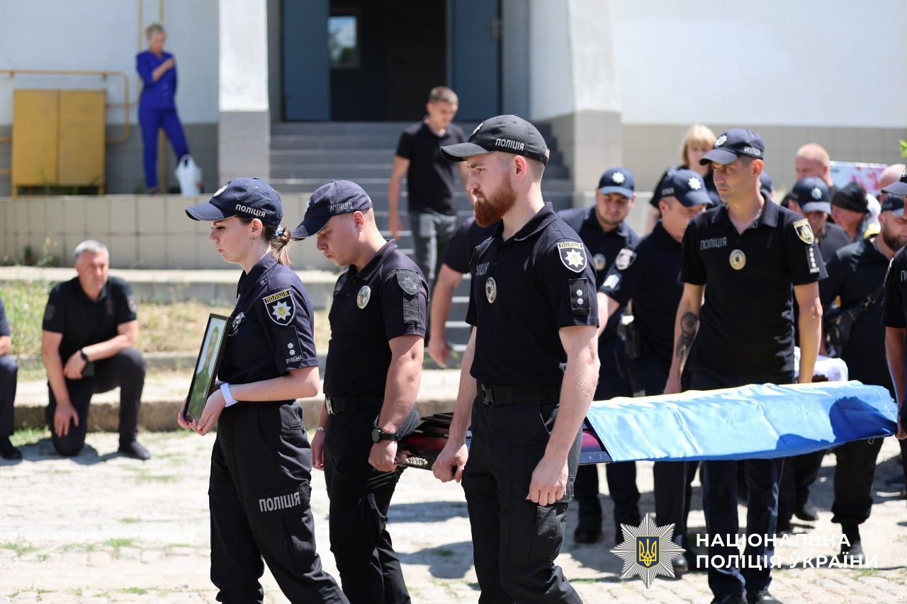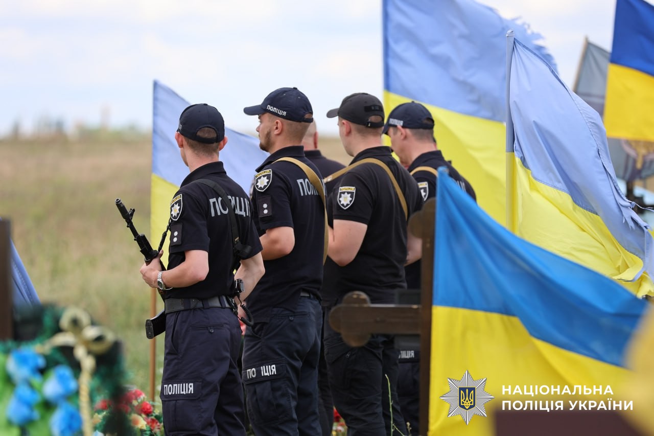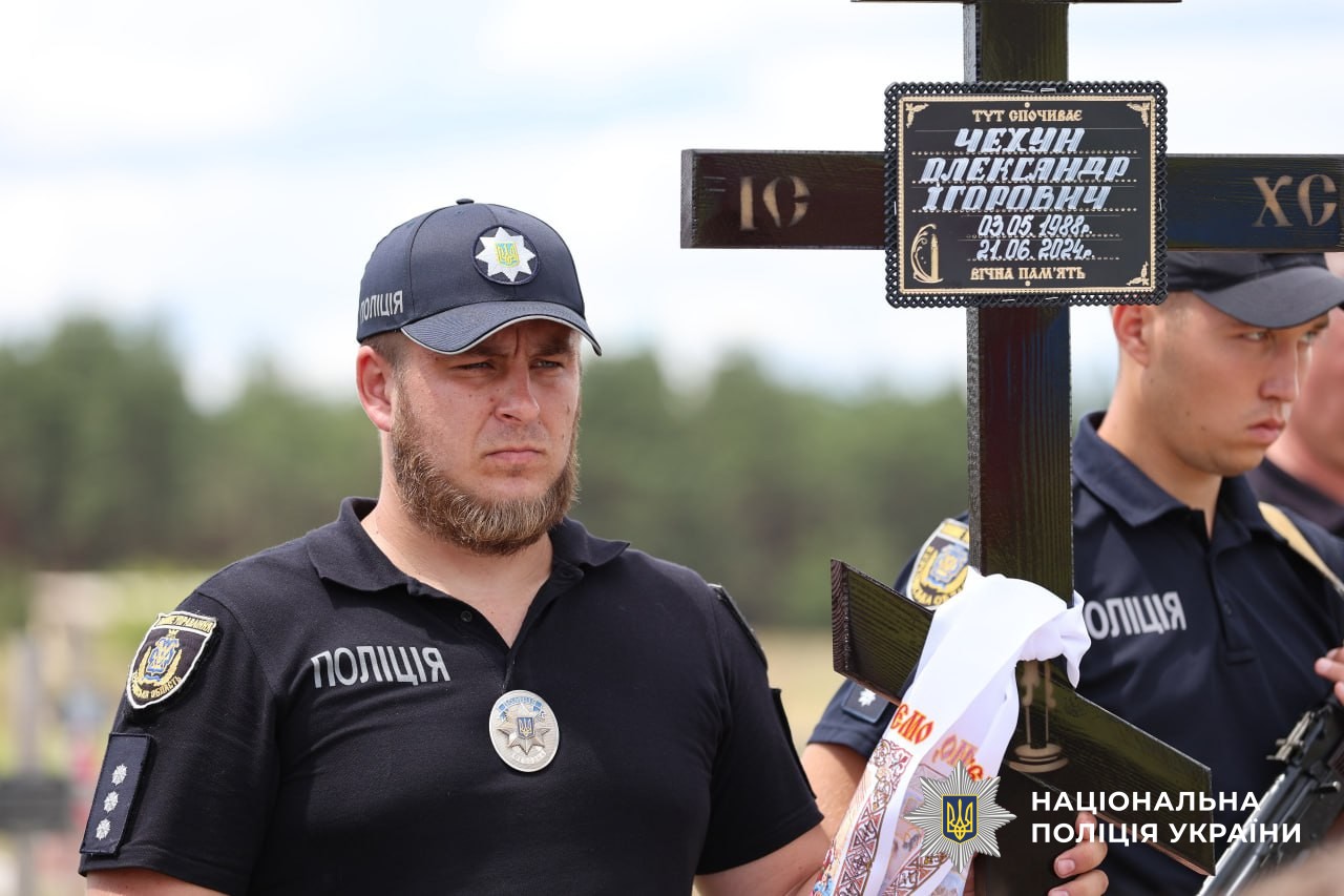 Поліцейські Херсонщини провели в останню путь старшого лейтенанта поліції Олександра Чехуна, загиблого під час чергування внаслідок російської підступної атаки