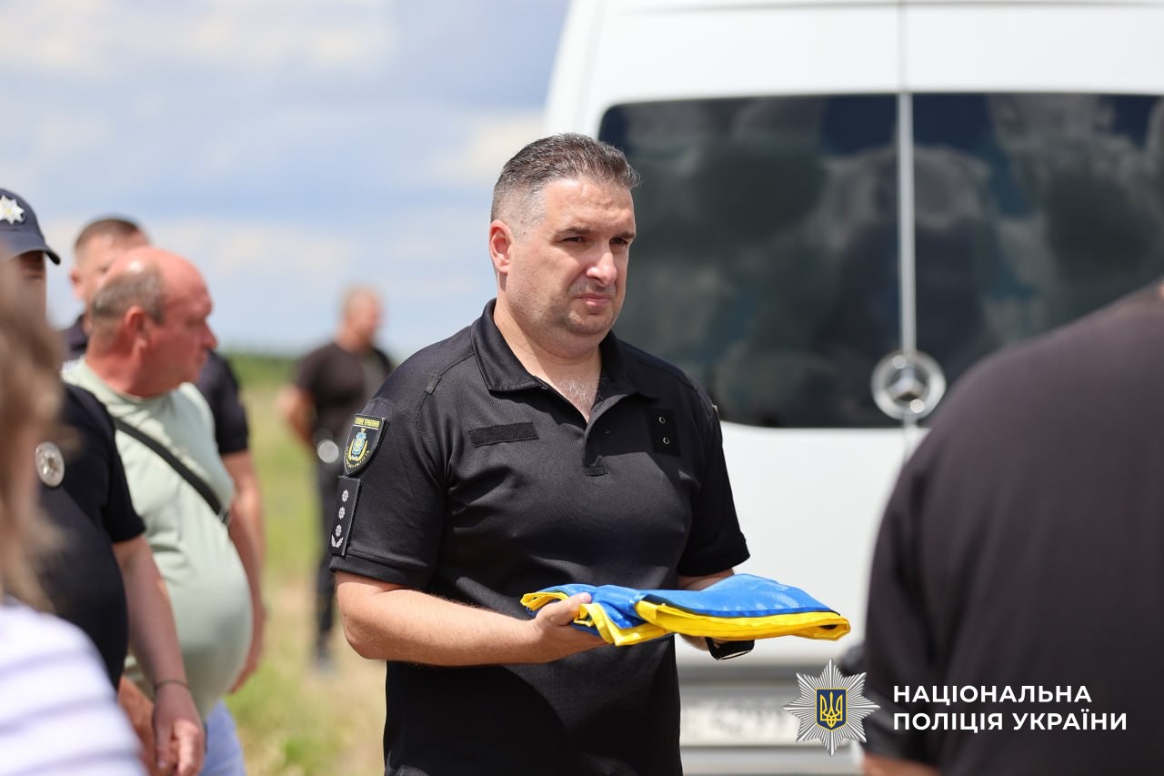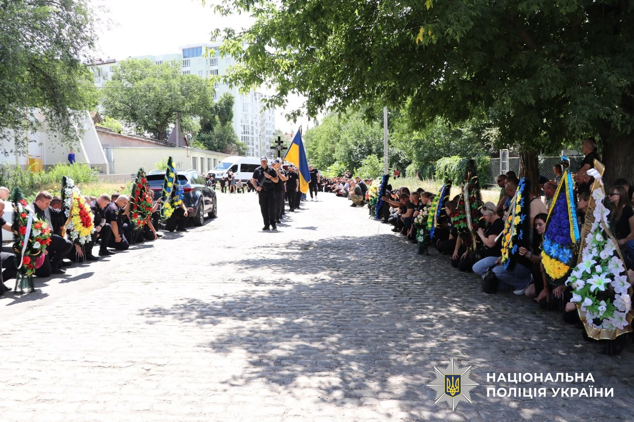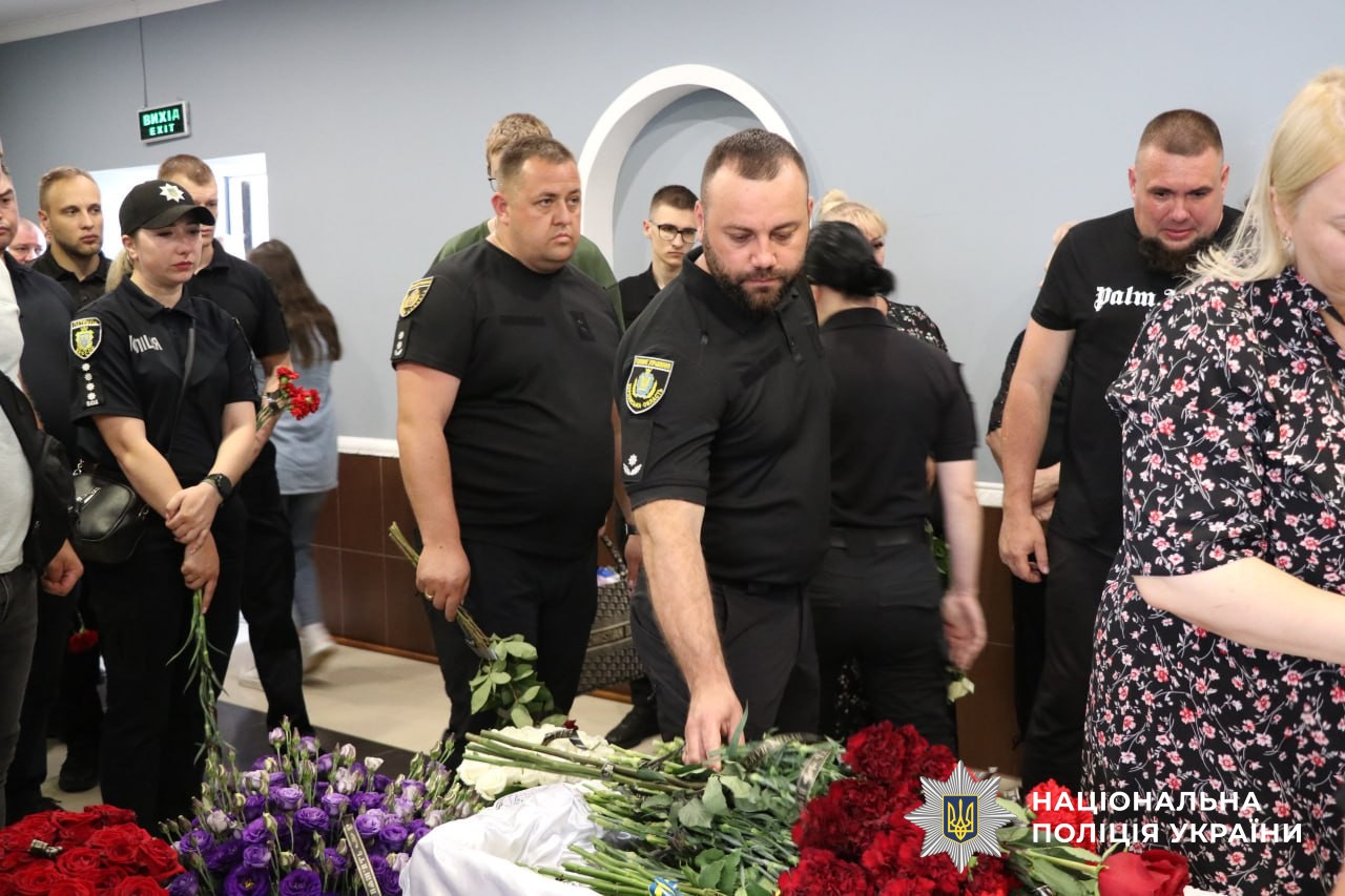 Підтримати рідних, віддати шану офіцеру та провести поліцейського в останню путь прийшли керівництво Головного управління Національної поліції в Херсонській області, колеги з відділення поліції, де працював Олександр, та працівники з інших підрозділів та служб.