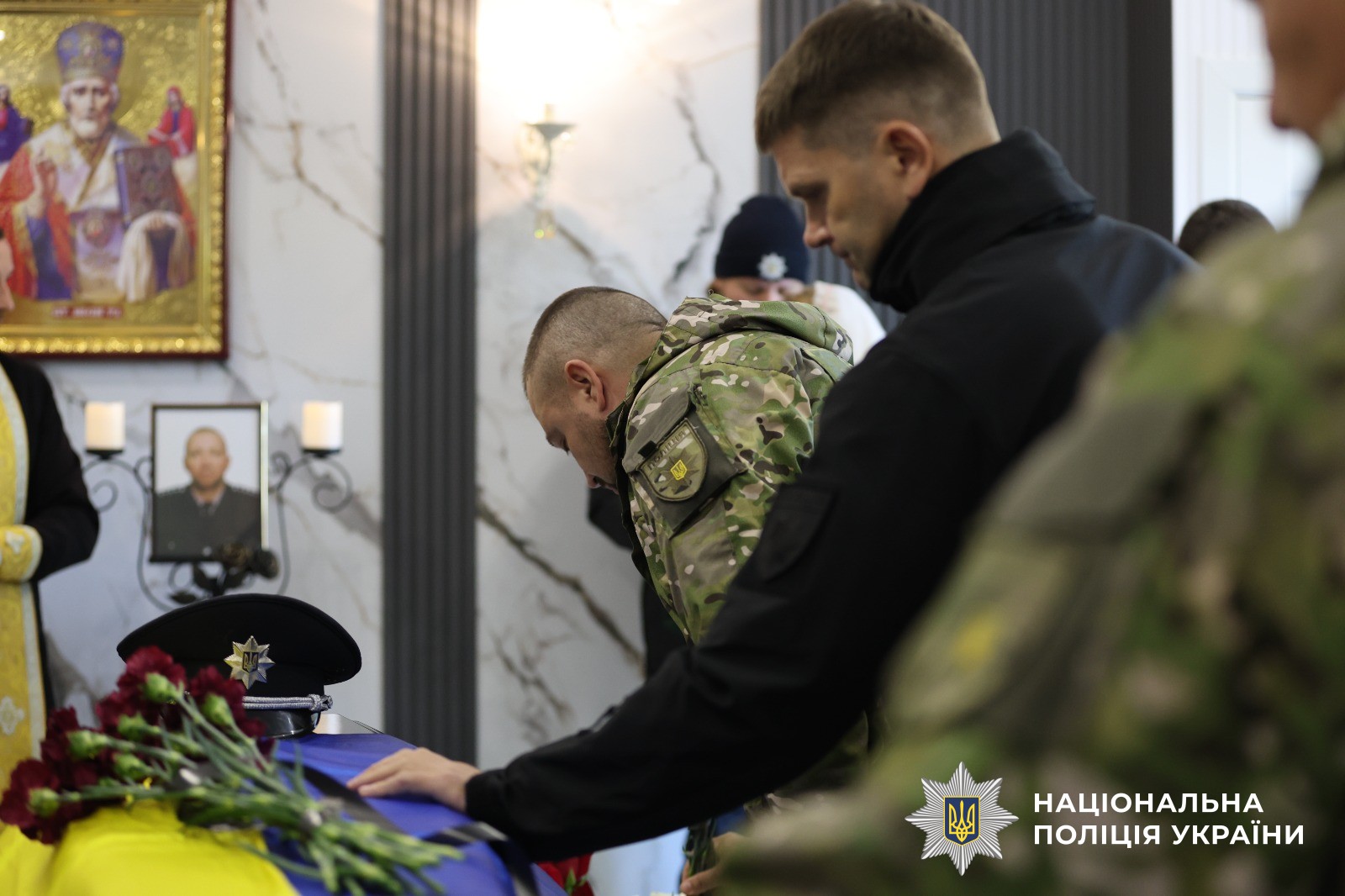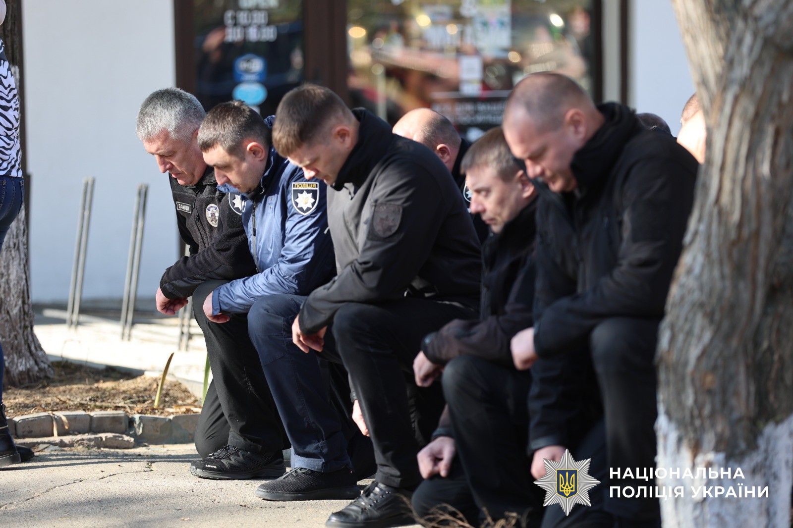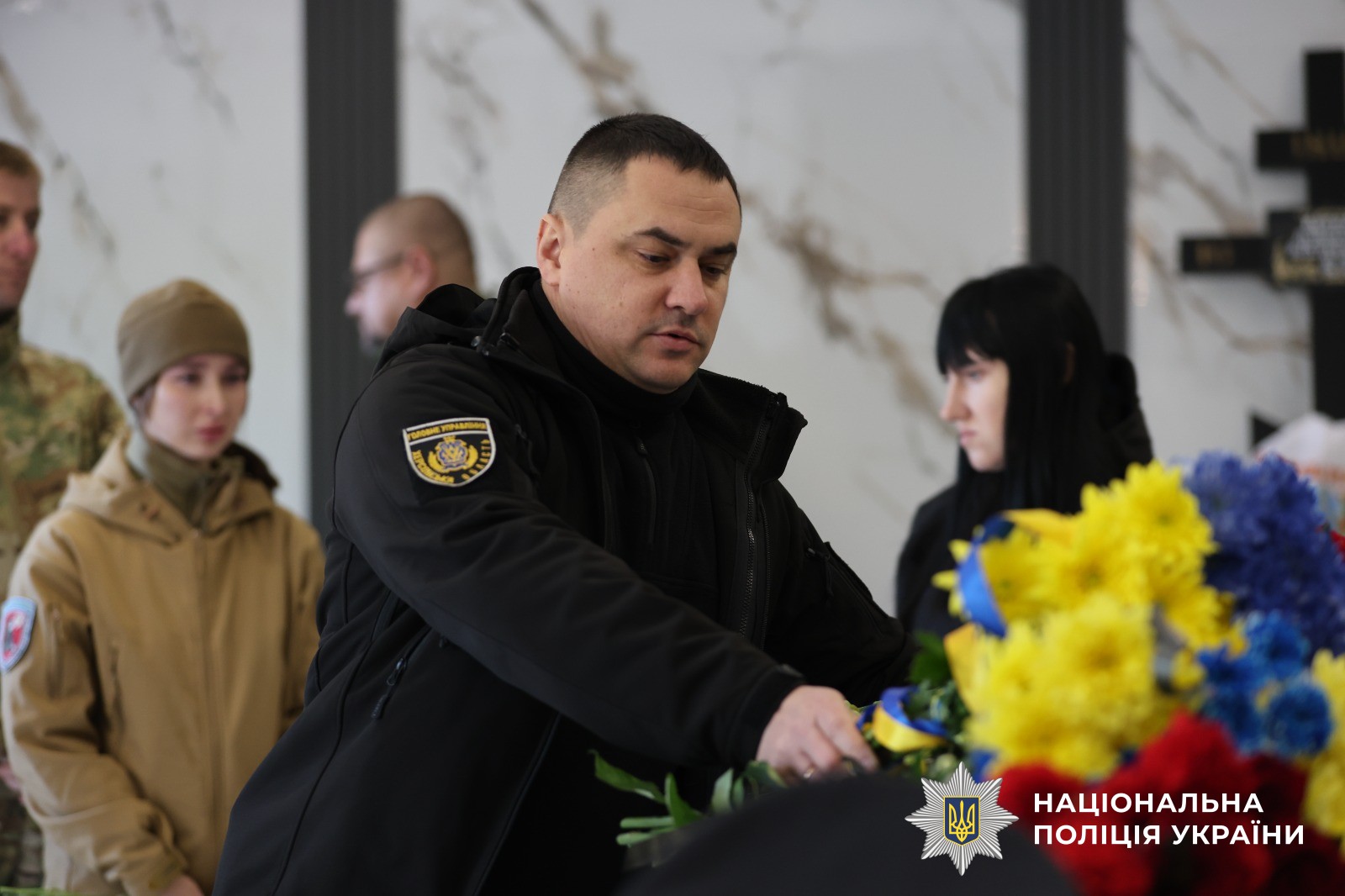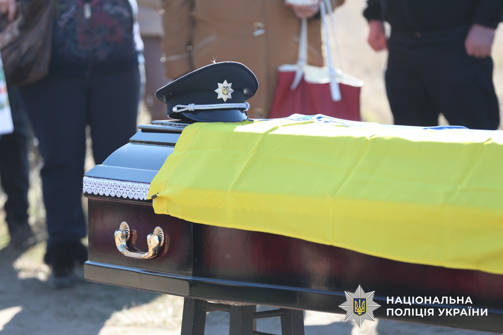 Віддати шану загиблому поліцейському прийшли керівництво та особовий склад поліції Херсонщини, друзі та колеги.