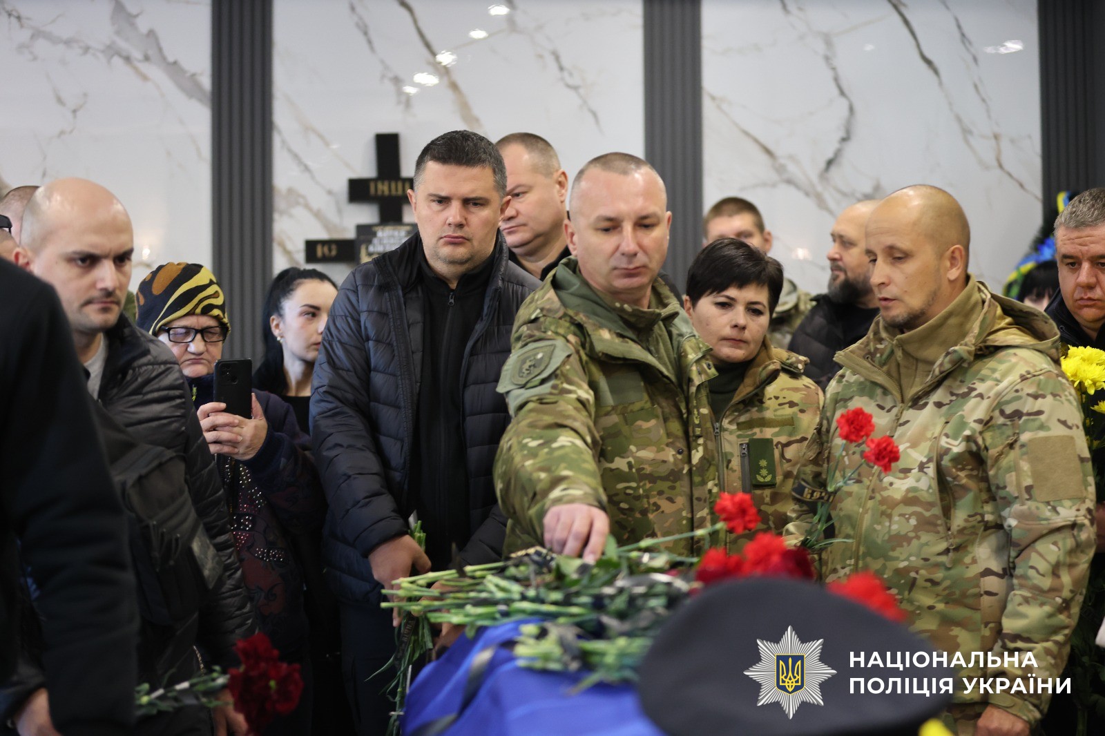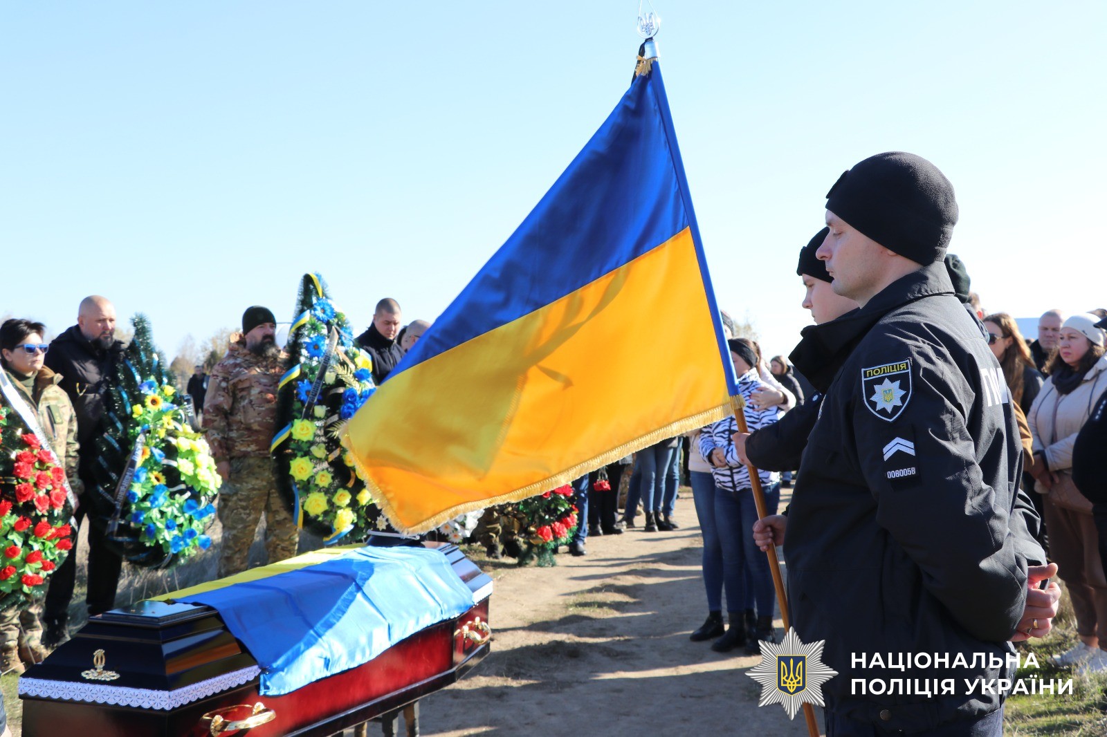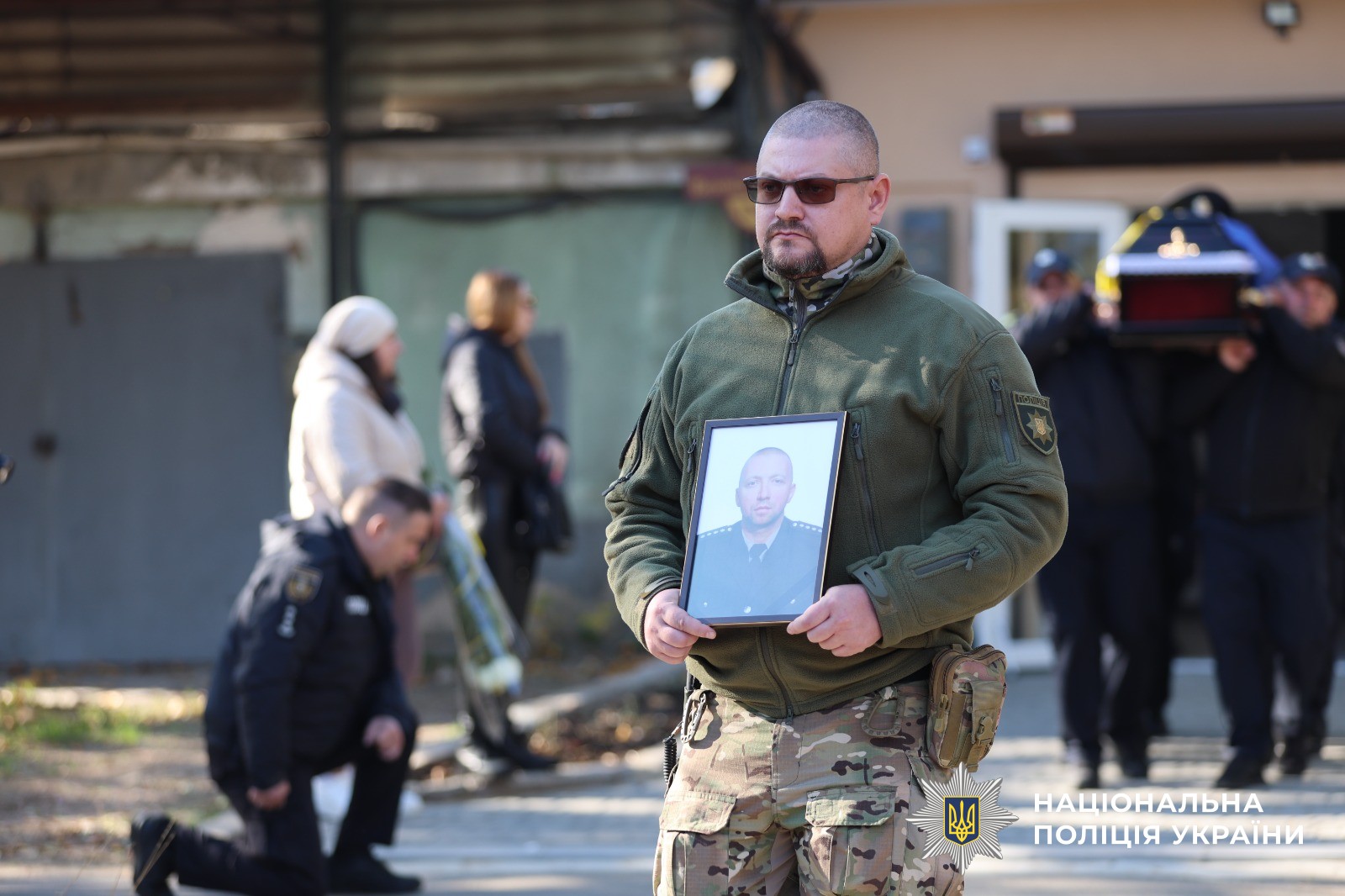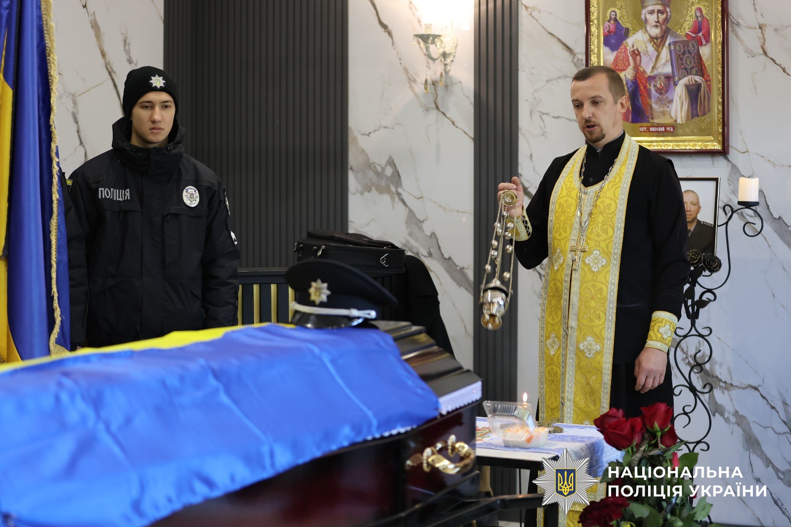 Віддати шану загиблому поліцейському прийшли керівництво та особовий склад поліції Херсонщини, друзі та колеги.