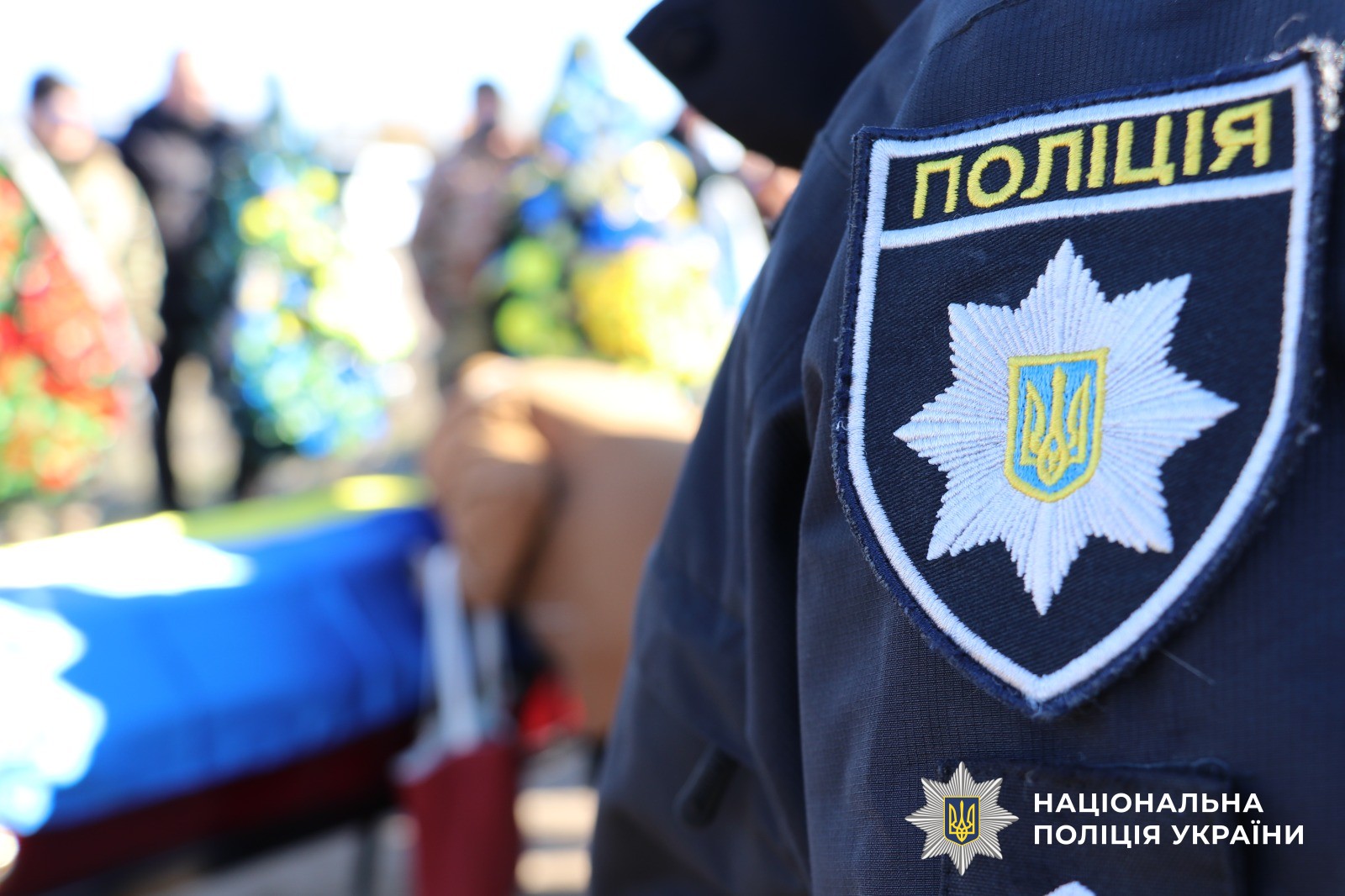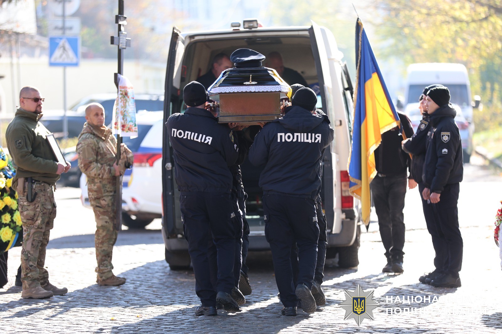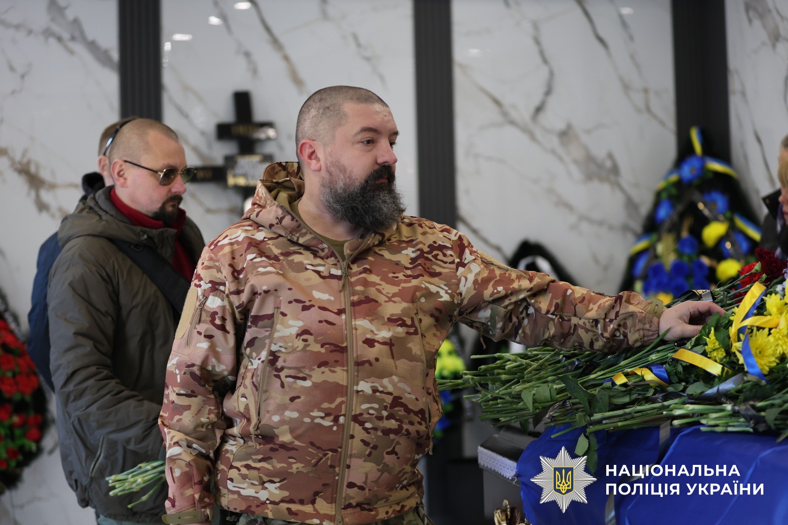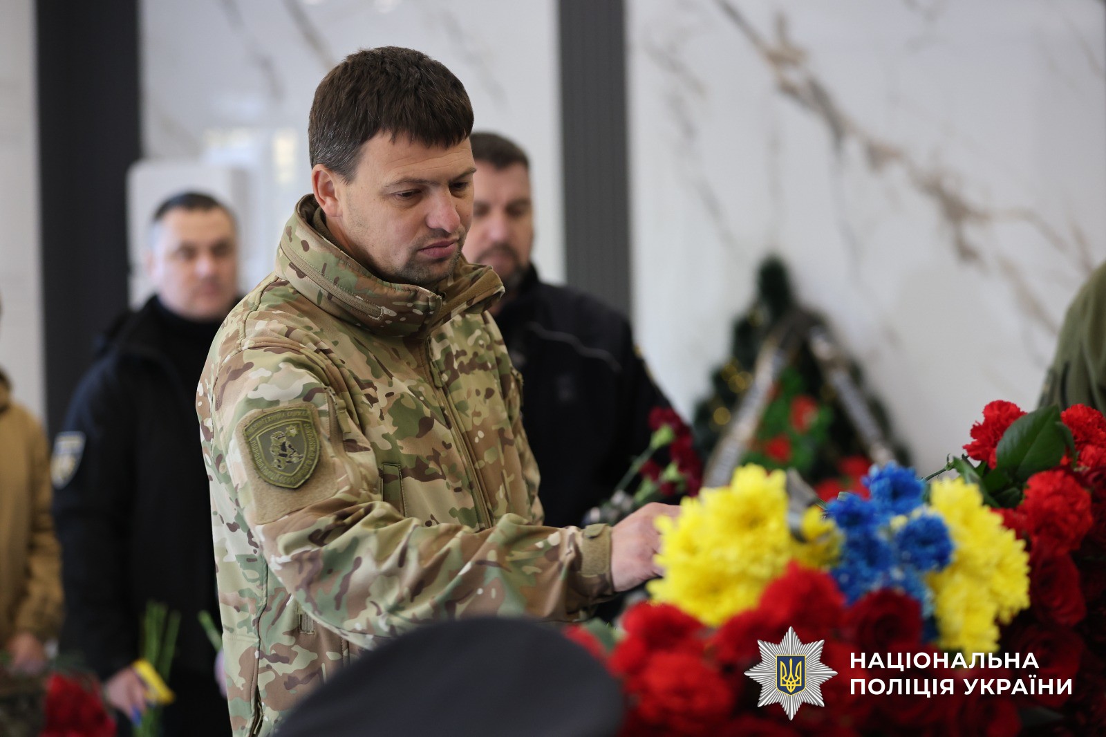 Віддати шану загиблому поліцейському прийшли керівництво та особовий склад поліції Херсонщини, друзі та колеги.