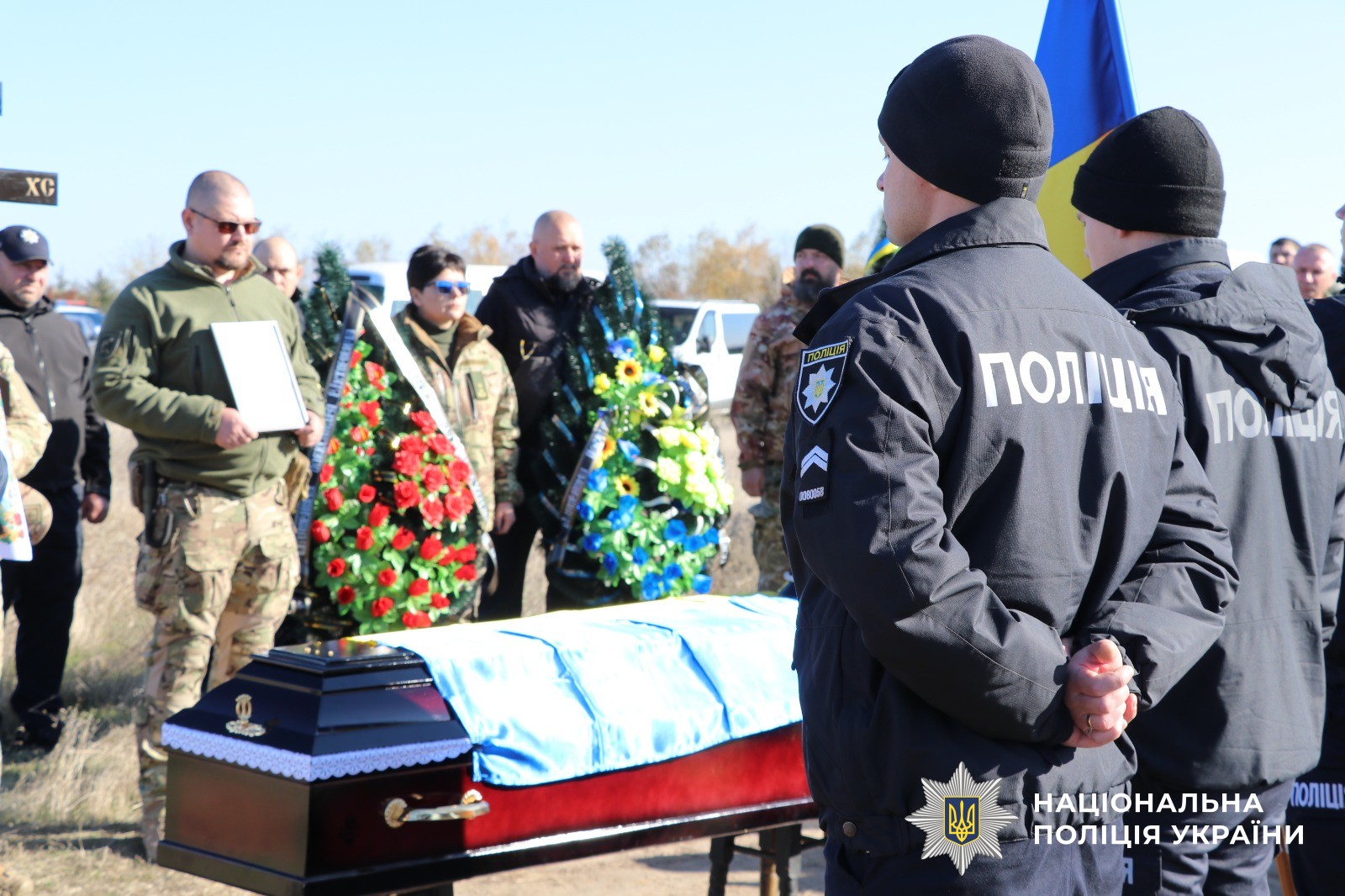 Поліцейські Херсонщини провели в останню путь свого колегу Олександра Вітра, який загинув під час розмінування