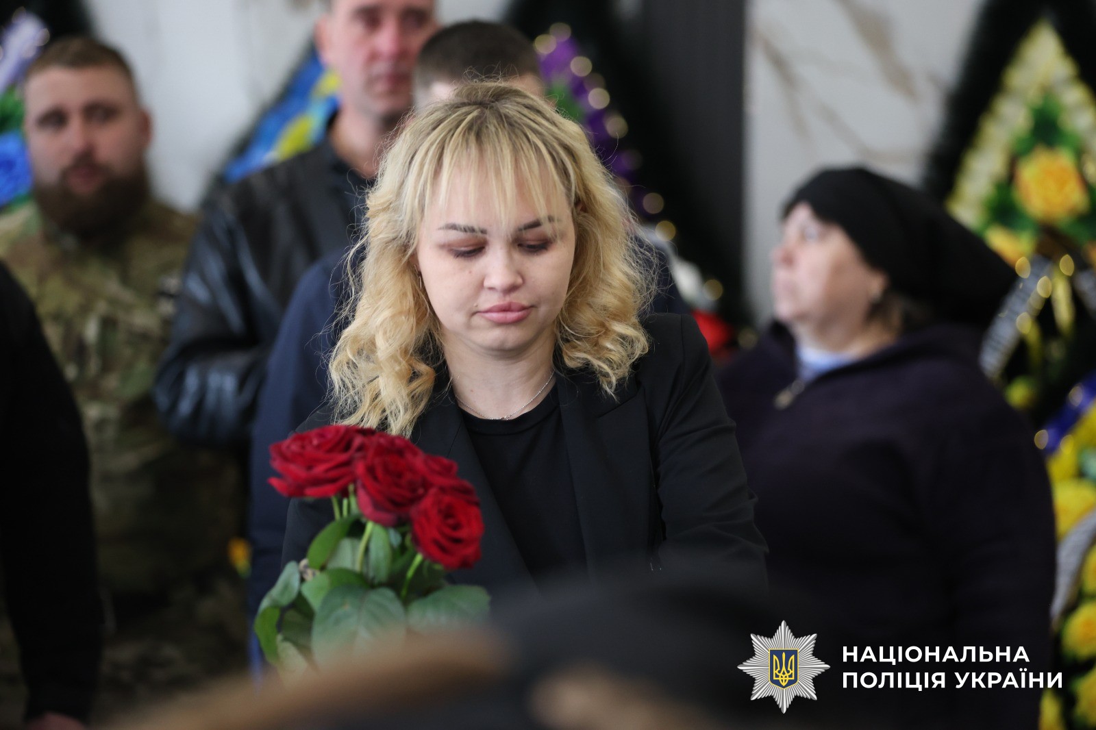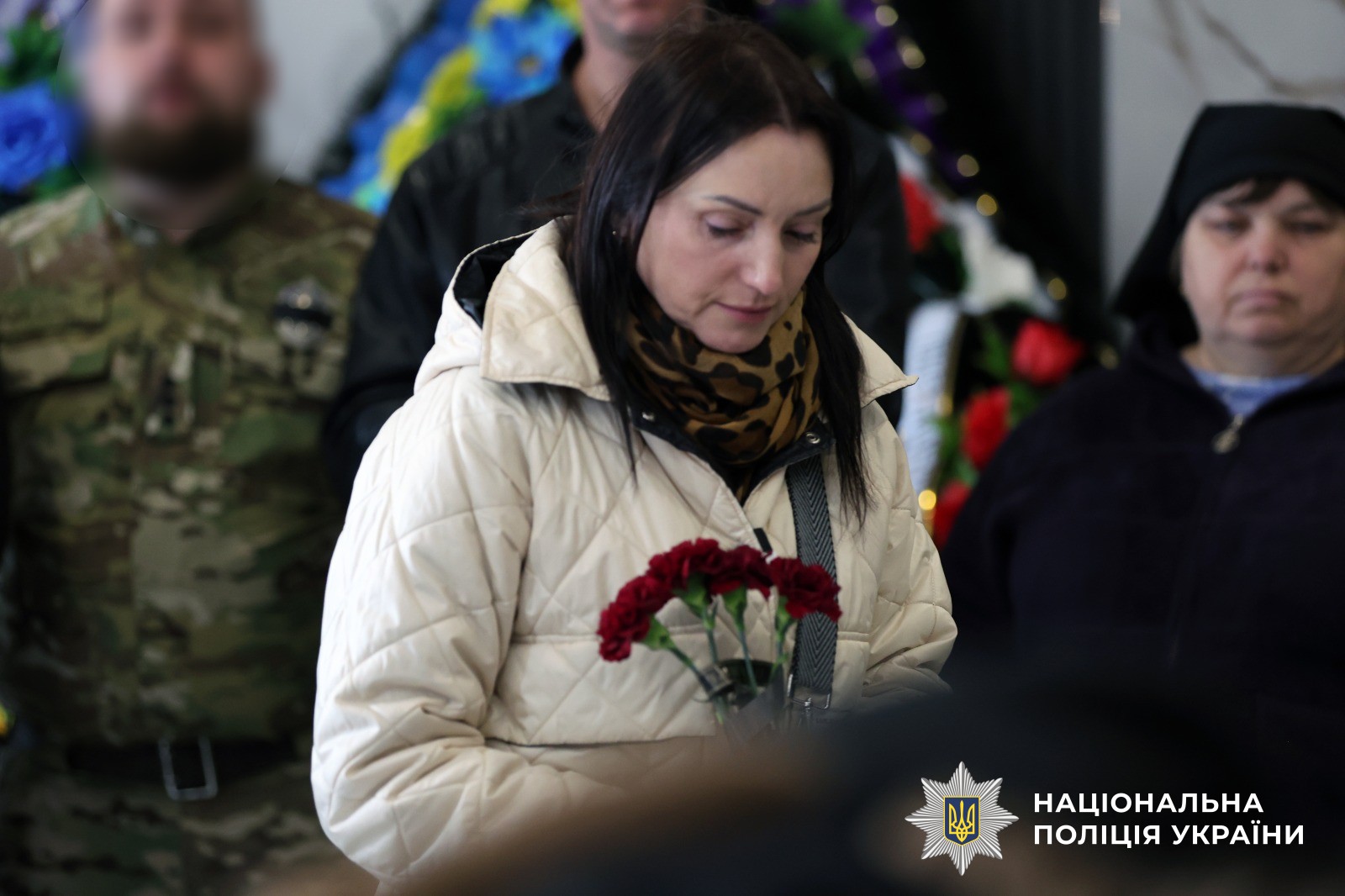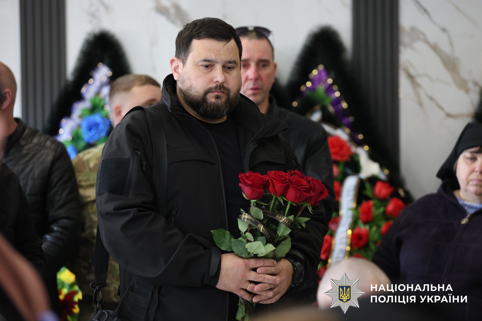 Поліцейські Херсонщини провели в останню путь свого колегу Віталія Кухарчука, який загинув внаслідок удару ворожого дрона