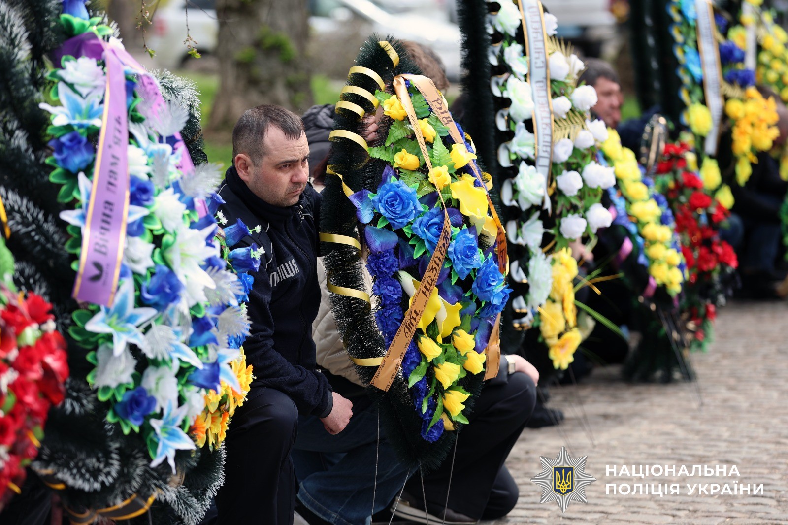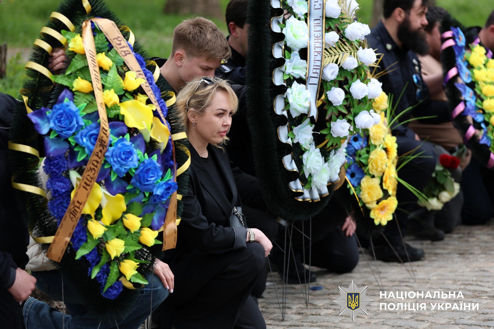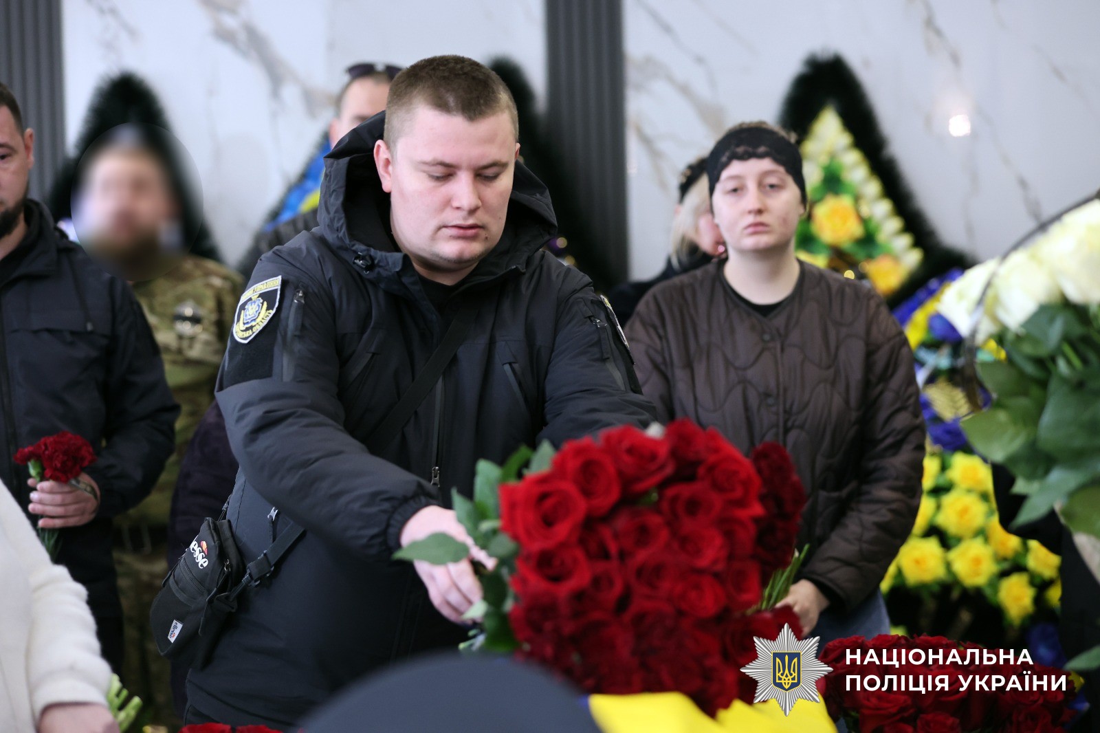 Поліцейські Херсонщини провели в останню путь свого колегу Віталія Кухарчука, який загинув внаслідок удару ворожого дрона