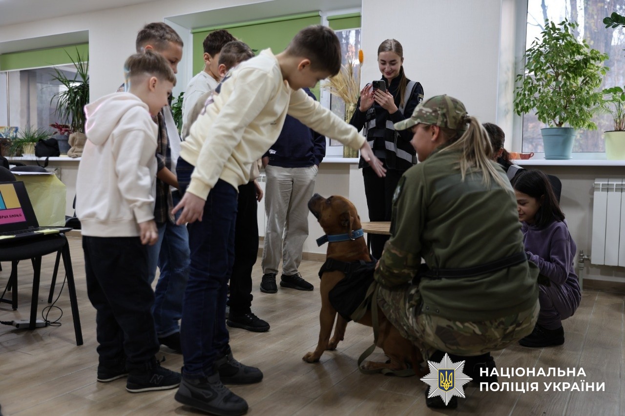 Особливим сюрпризом для дітей стало знайомство з Джексоном – собакою кінологічної служби ГУНП. Він підкорив усіх з першої хвилини, подарував багато позитивних емоцій і став своєрідним «чотирилапим терапевтом», який вміє заспокоїти одним поглядом.