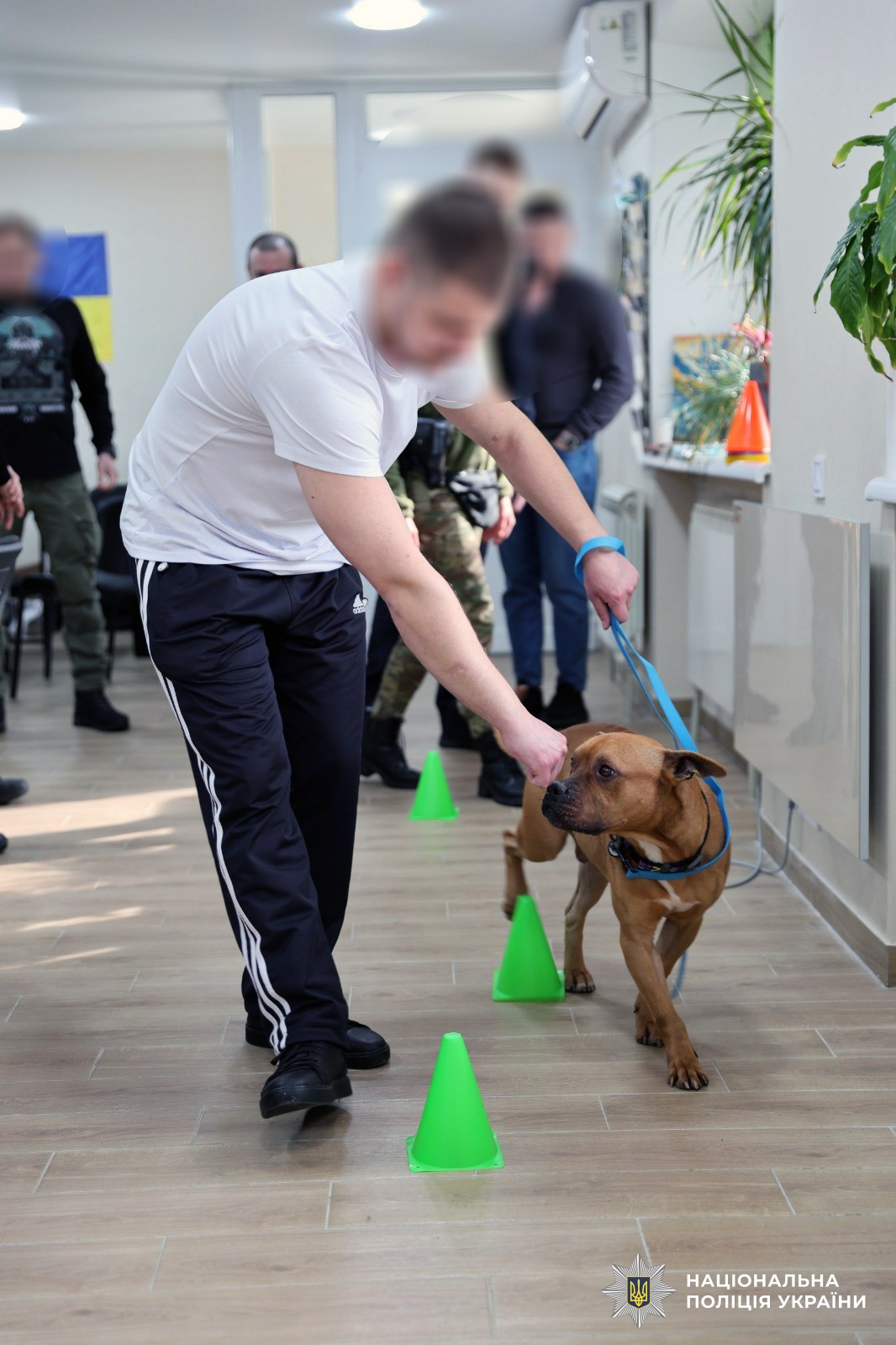 До заняття також долучився чотирилапий помічник правоохоронців Джексон. Елементи каністерапії сприяли розслабленню, зниженню тривожності та створенню довірливої атмосфери. Живе спілкування з твариною допомогло учасникам відчути спокій і позитивні емоції. Крім того, Джексон «передав» поліцейським картки зі словами підтримки.