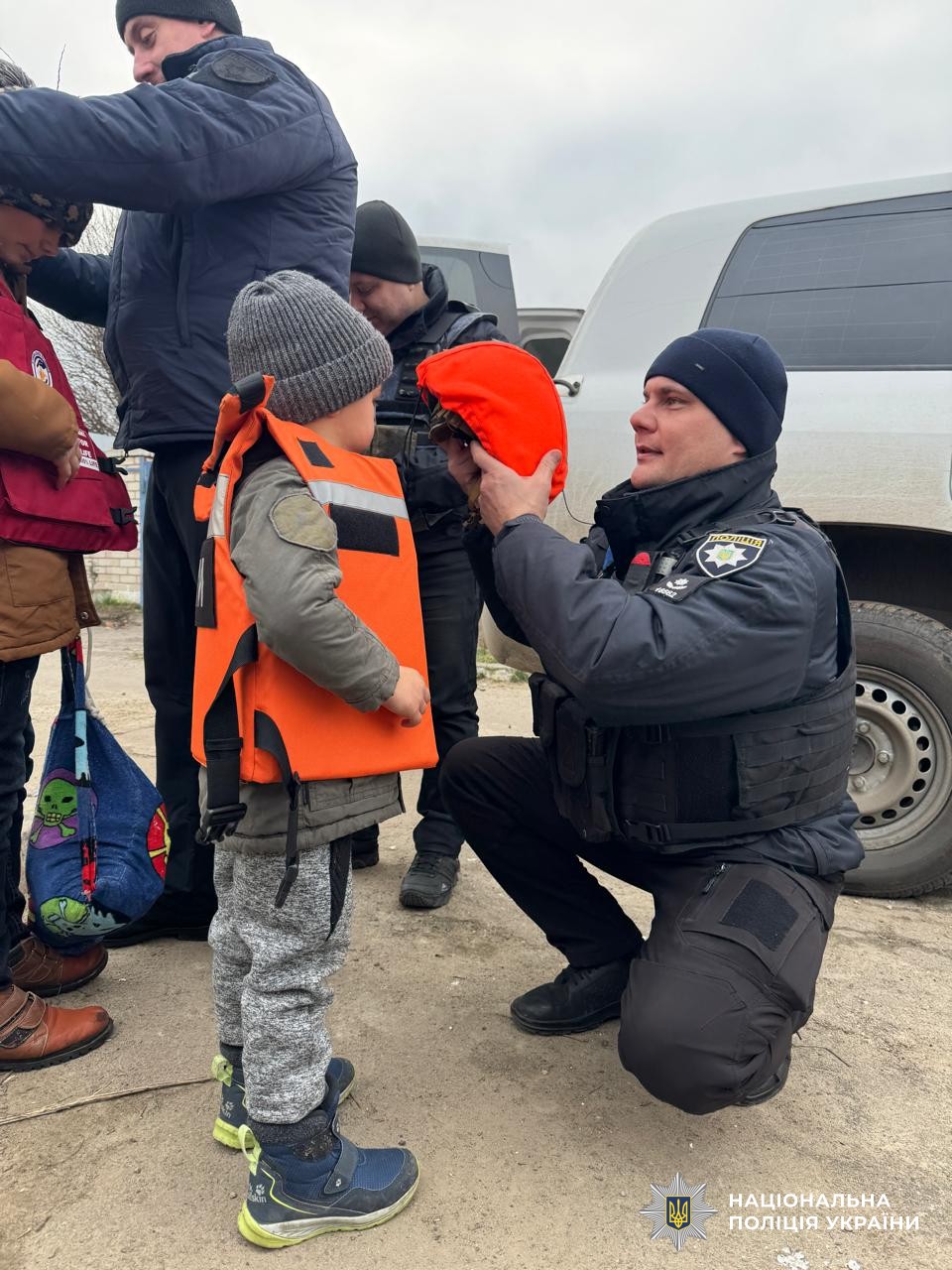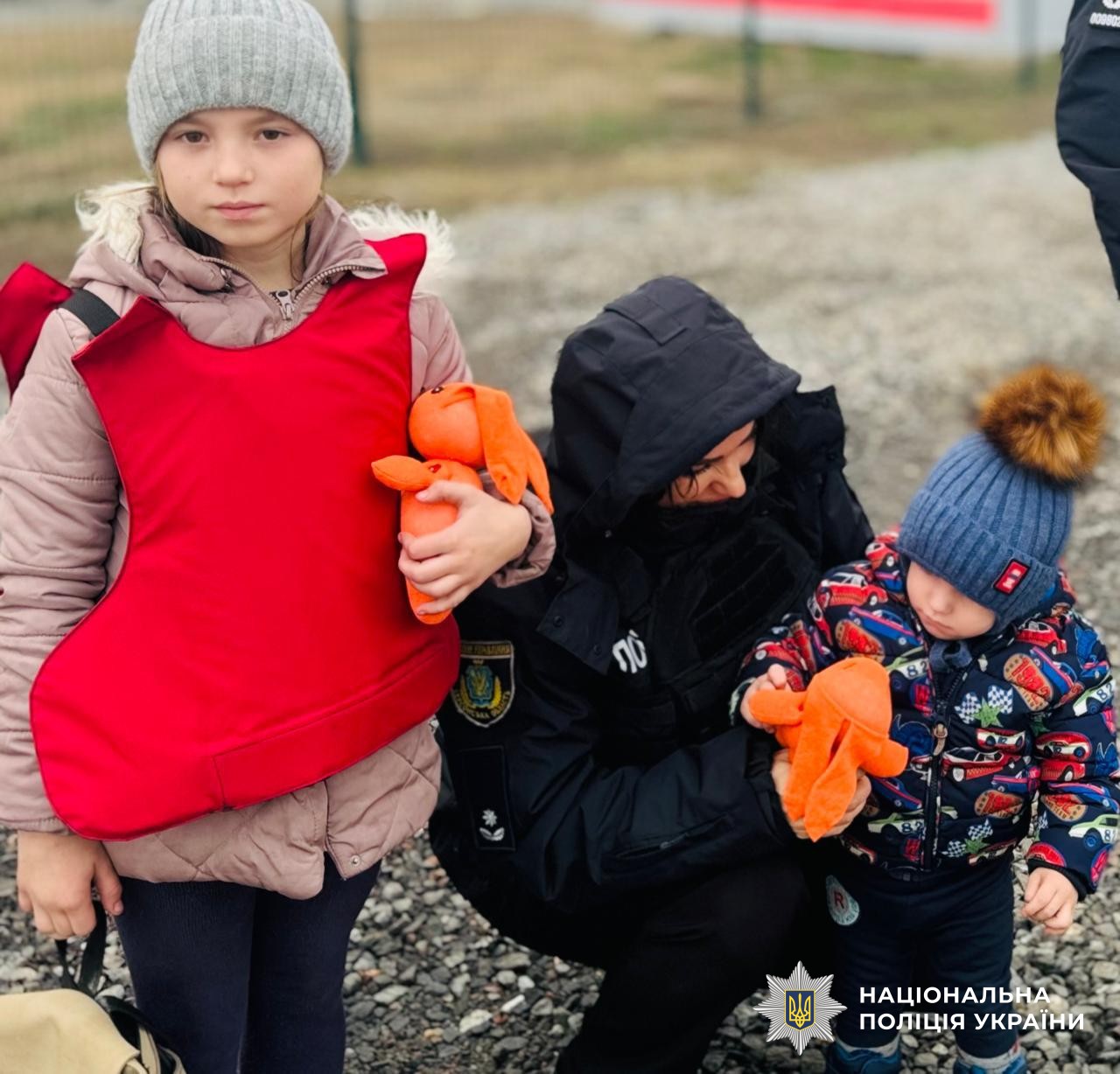 Поліцейські вивезли дві родини з шістьма дітьми з небезпечних прифронтових населених пунктів Херсонської громади