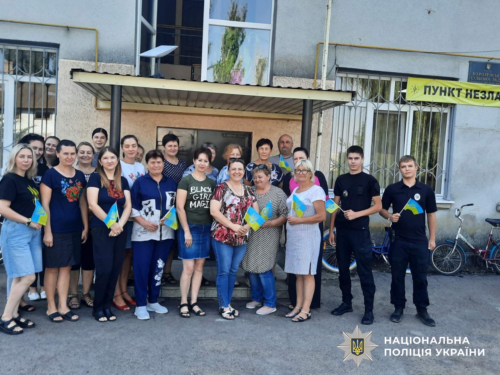 З нагоди святкування Дня Державного Прапора та 33-ї річниці Незалежності України за ініціативи місцевих військових адміністрацій у п’яти населених пунктах деокупованої частини Херсонщини пройшли урочисті заходи: підняття Державного Прапора та вшанування пам’яті полеглих захисників України. Участь у заходах взяло близько ста громадян.