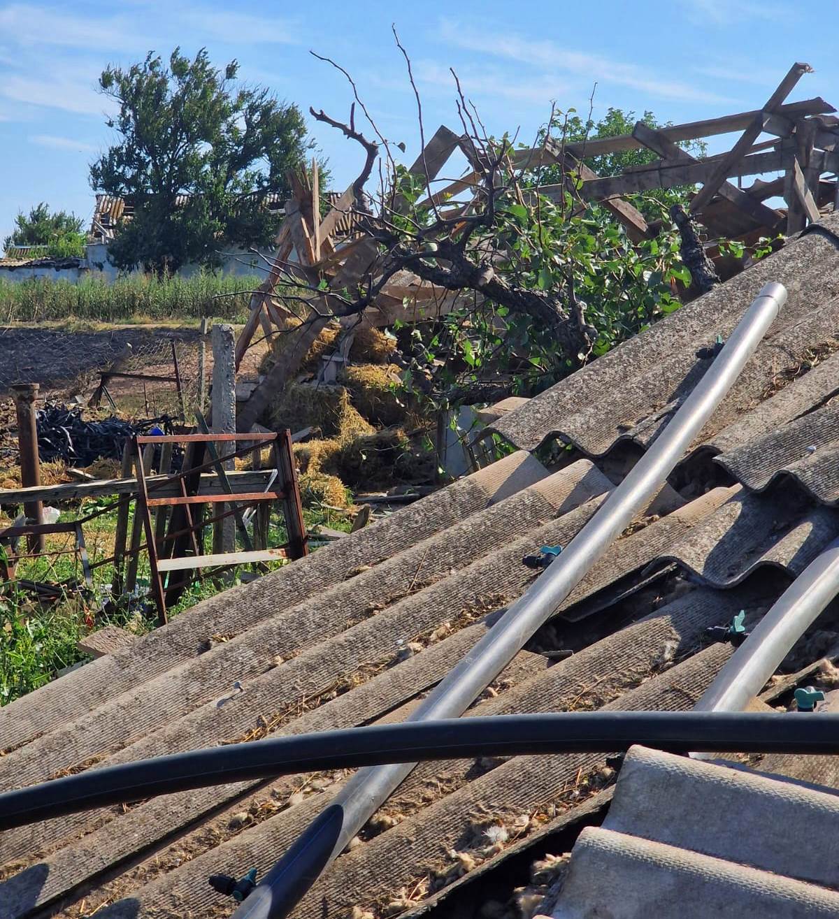 Російські воєнні злочинці завдали авіаудари по смт Козацьке та с.Веселе Каховського району. Потужними вибухами майже знищено цех фабрики, там зруйновано дах, вікна та двері, також пошкоджена будівля пам’ятки культури та житлові будинки.