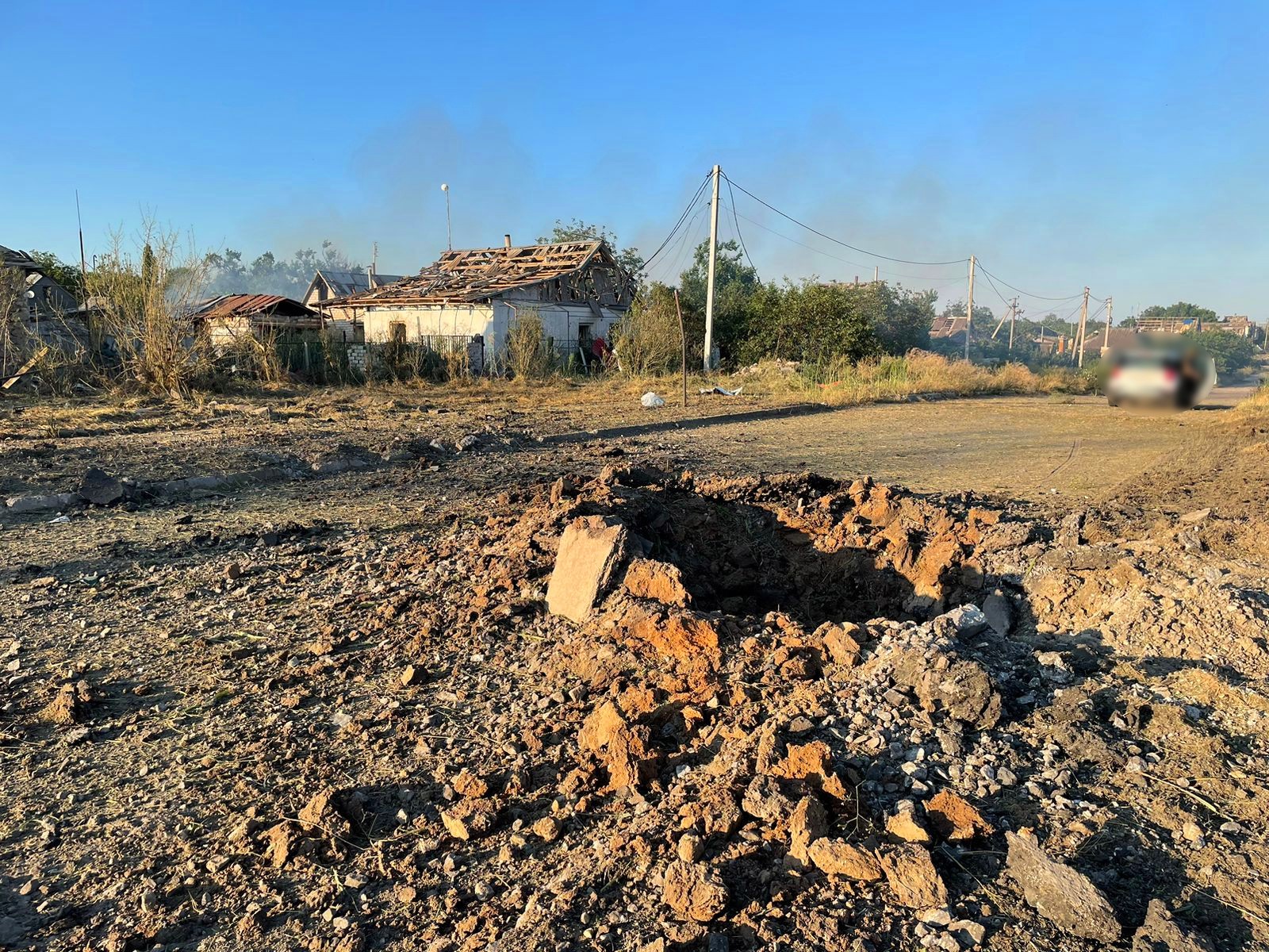 З авіації противник обстріляв смт Козацьке Каховського району, вибухами пошкоджено дорожнє покриття, в черговий раз під атакою сільськогосподарське підприємство.