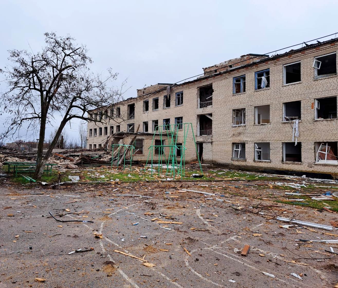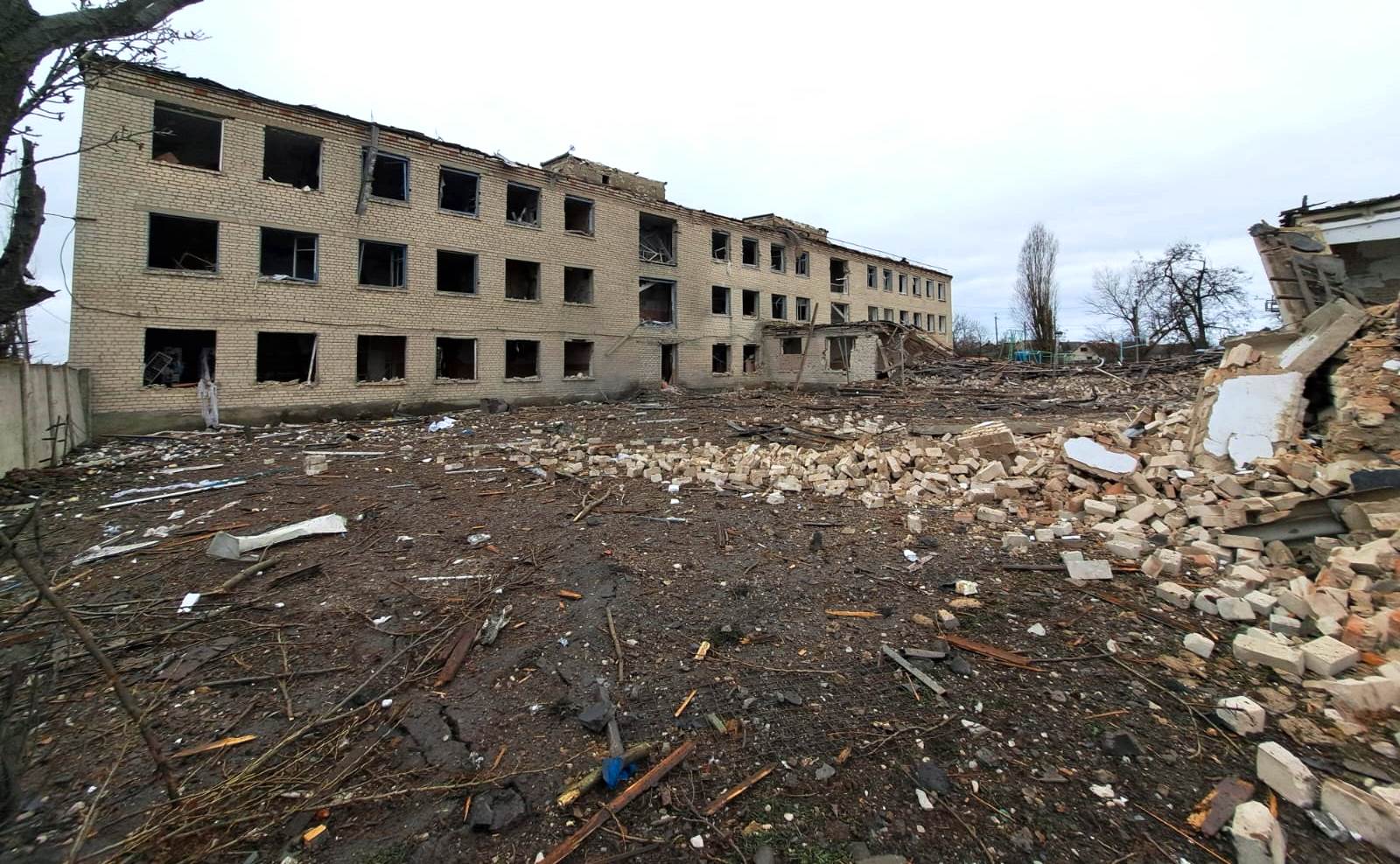 Поліція фіксує наслідки збройної агресії армії рф проти мирного населення Херсонщини: знищений навчальний заклад та атаковано пункт видачі гуманітарної допомоги