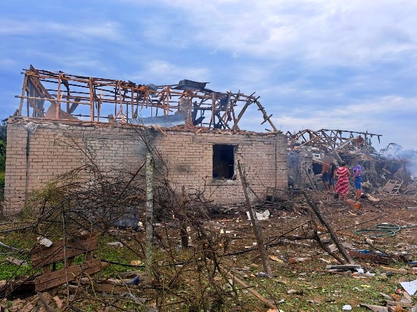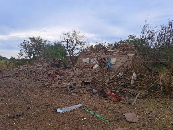 російські військові здійснили авіаудар по с.Новоберислав, внаслідок вибухів пошкоджено щонайменше 20 житлових будинків, деякі приміщення не підлягають відновленню, на їх місці залишились вирви та будівельне сміття, що утворилося зі зруйнованих дахів та стін.