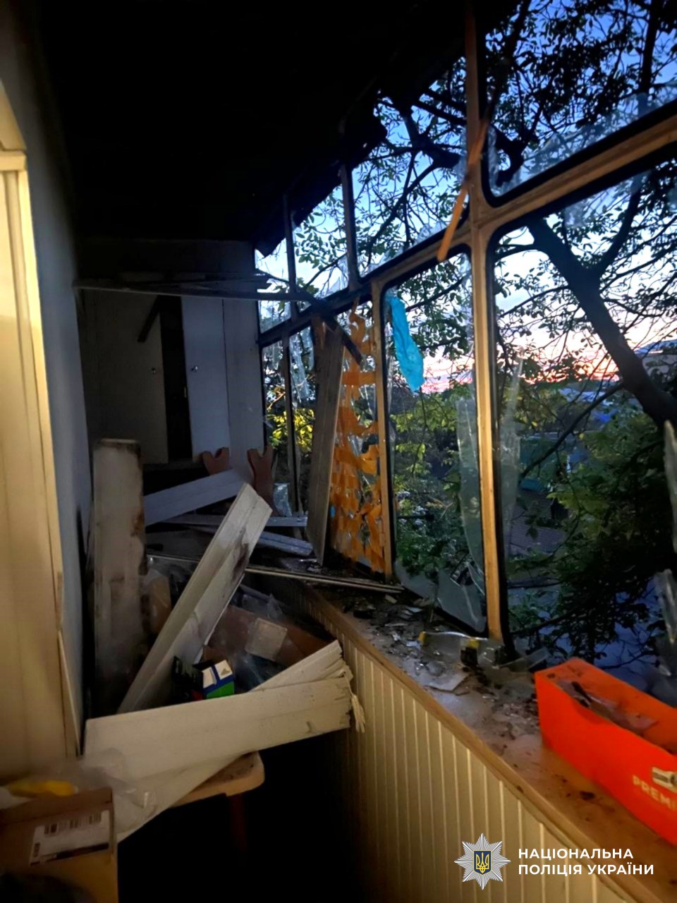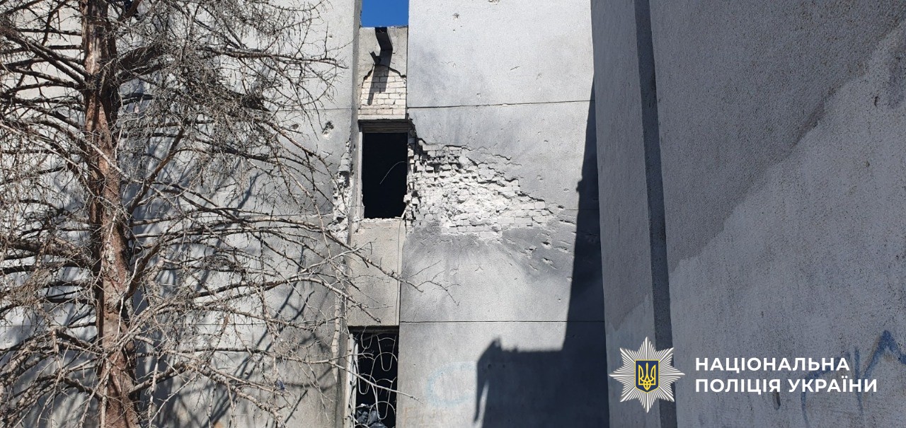 російські удари спричинили пошкодження багатоквартирного і трьох приватних будинків, службового автомобіля поліції та двох цивільних автівок.