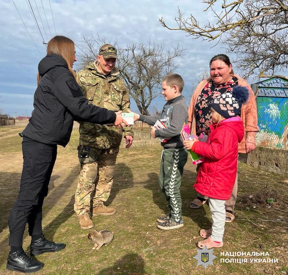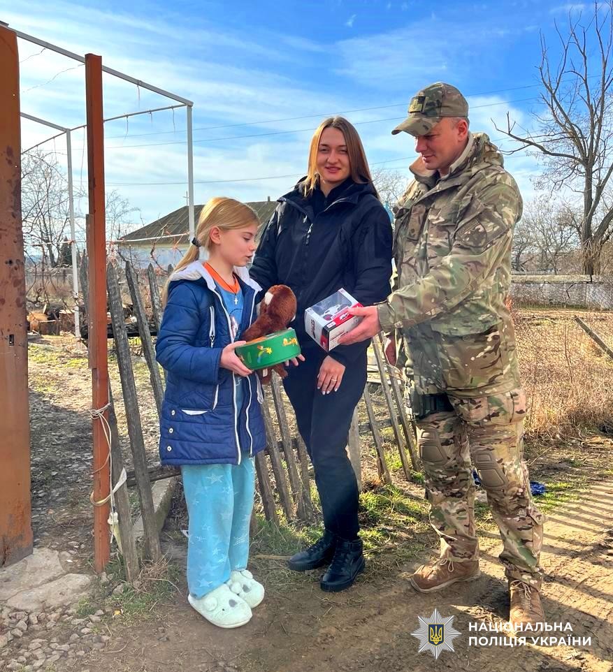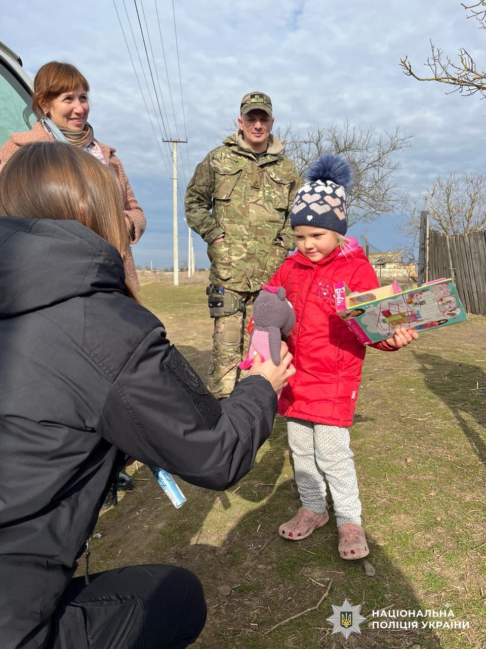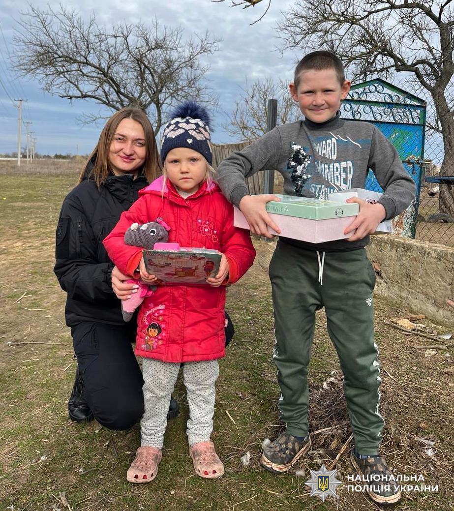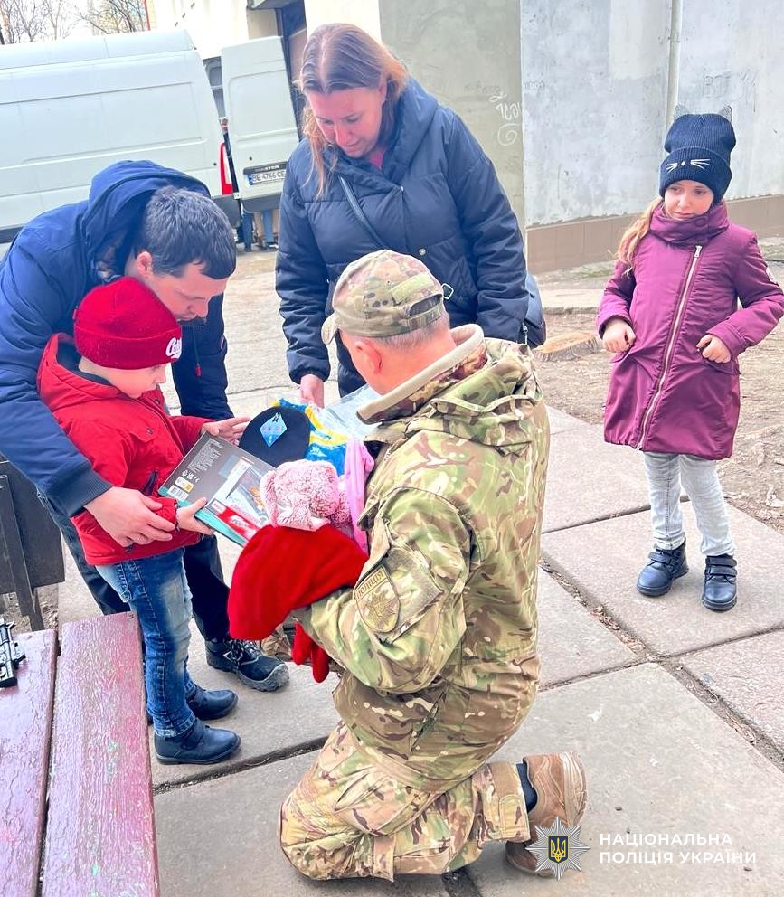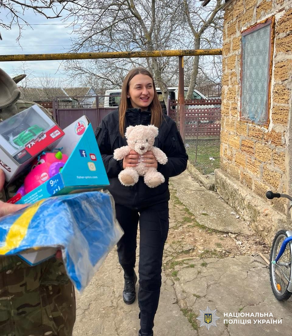 Цього разу спільно з поліцейським офіцером громади ювенали відвідали багатодітні та внутрішньо переміщені сім’ї у Музиківській громаді й Херсоні. Поліцейські поспілкувалися з батьками та дітьми, дізналися, чого вони потребують у побуті, як хлопчики й дівчата залучені до освітнього процесу і чого їм не вистачає для якісного онлайн-навчання. Потреби були у теплому одязі, постільній білизні та засобах індивідуальної гігієни. Спільно з волонтерами поліцейські зберуть усе необхідне та згодом привезуть родинам. А щоб трохи розрадити дітей та підняти їм настрій, ювенали подарували їм м’які іграшки та розвиваючі ігри, які передали представники волонтерської організації "Planet of People".