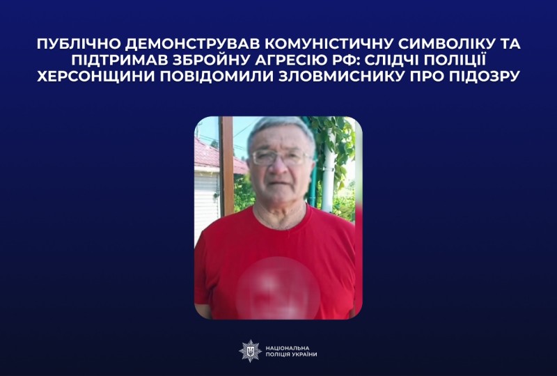 Публічно демонстрував комуністичну символіку та підтримав збройну агресію рф: слідчі поліції Херсонщини повідомили зловмиснику про підозру