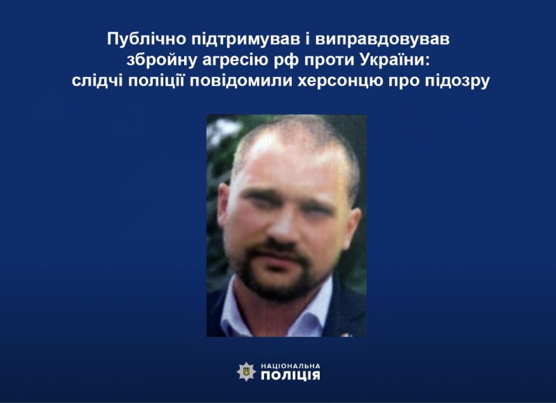 Публічно підтримував і виправдовував збройну агресію рф проти України: слідчі поліції повідомили херсонцю про підозру