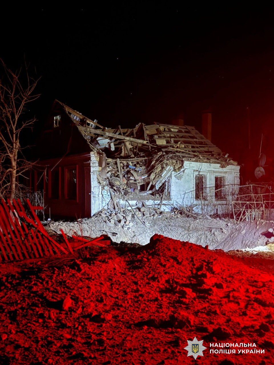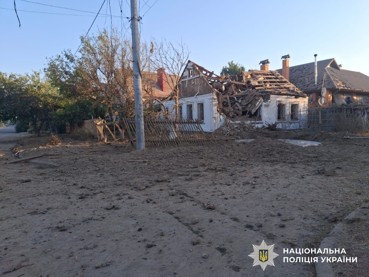 У Наддніпрянському внаслідок атаки ударного безпілотника постраждали троє поліцейських. 37-річний сержант поліції отримав контузію, його госпіталізували. Двоє інших правоохоронців 33 та 29 років отримали легкі травми, стан їх здоров’я задовільний.