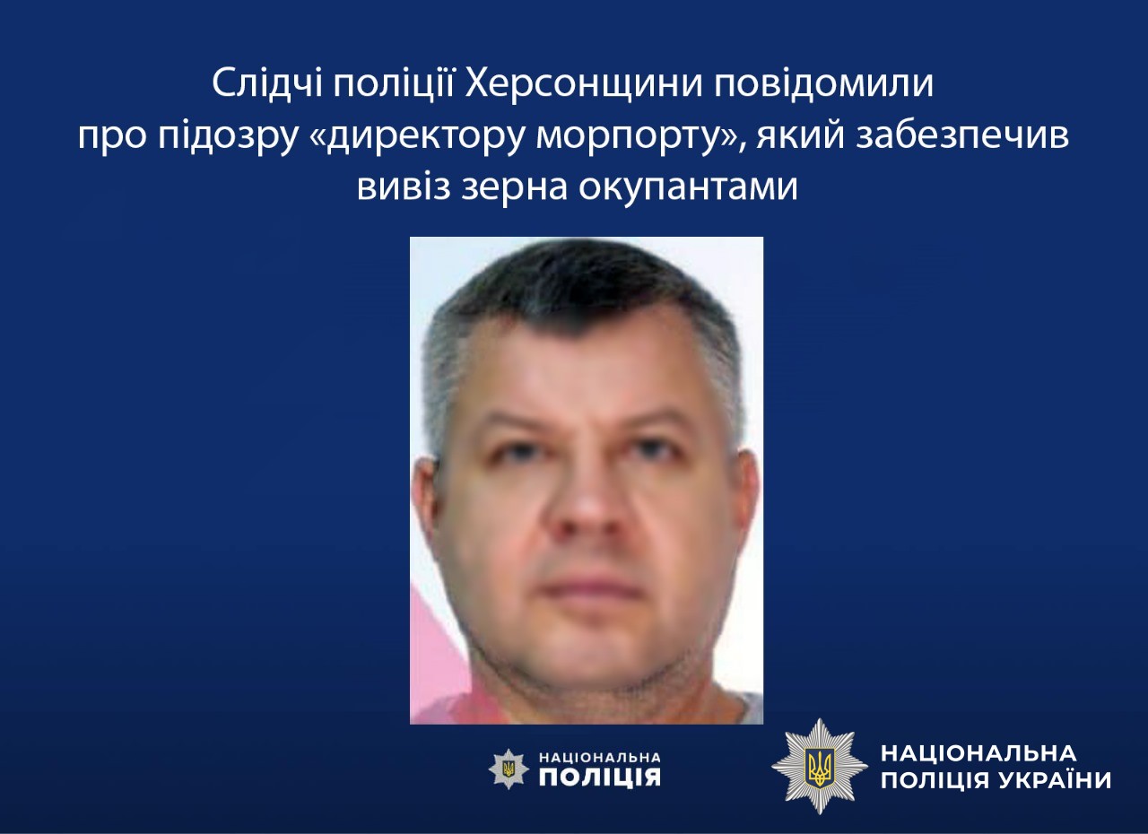 Слідчі поліції Херсонщини повідомили про підозру «директору морпорту», який забезпечив вивіз зерна окупантами
