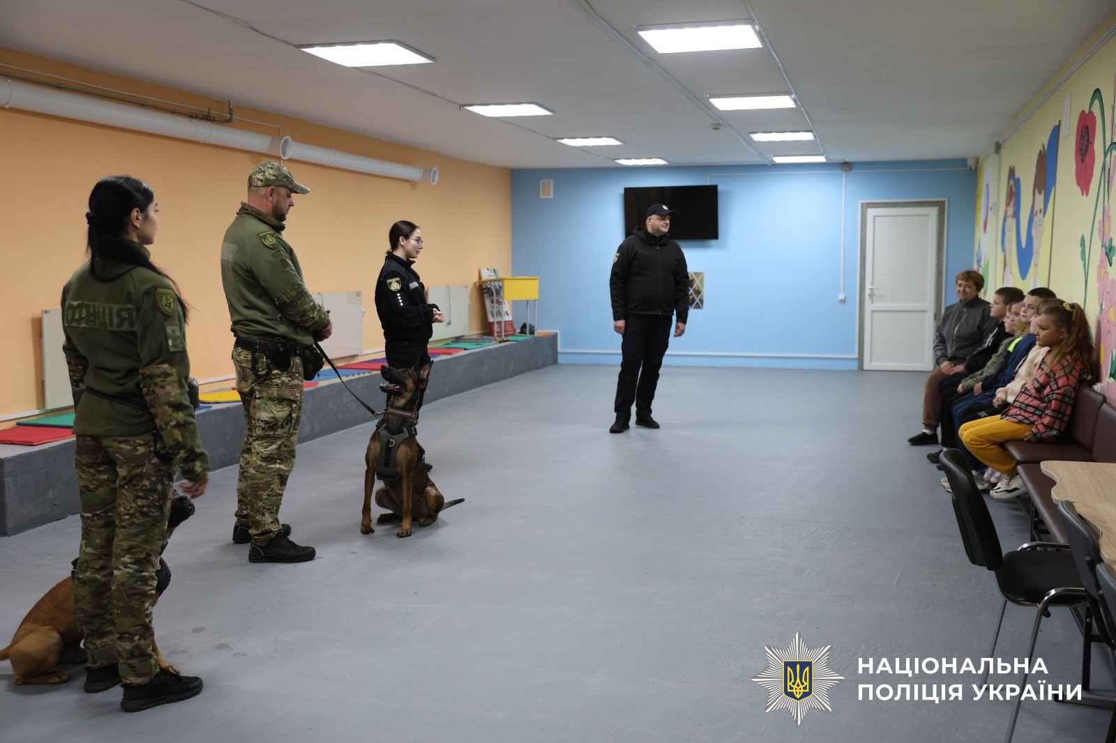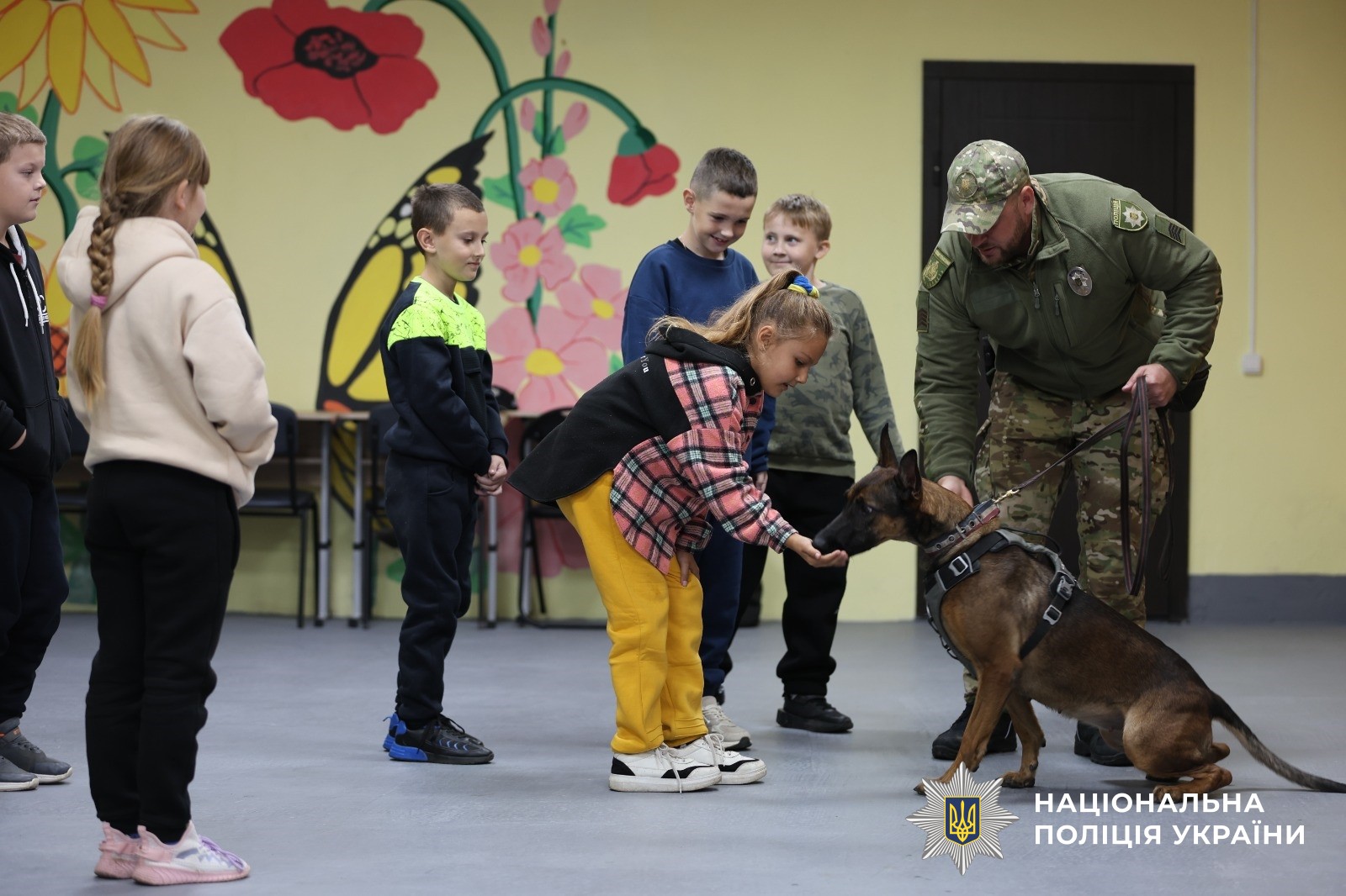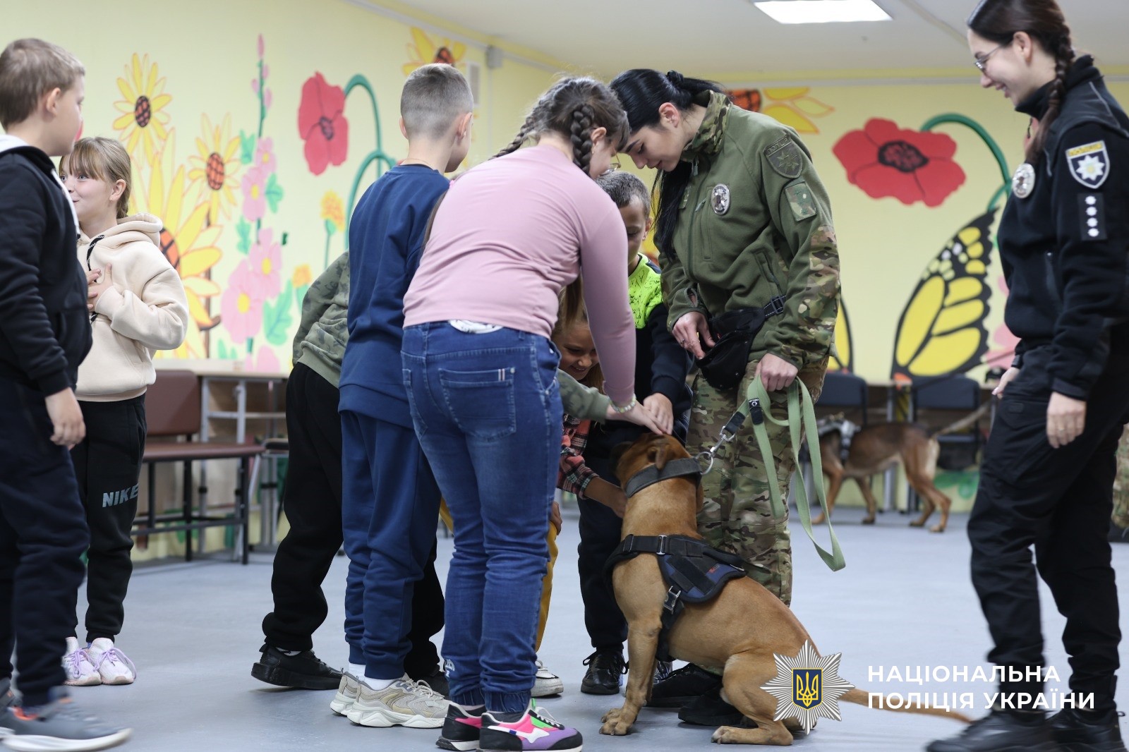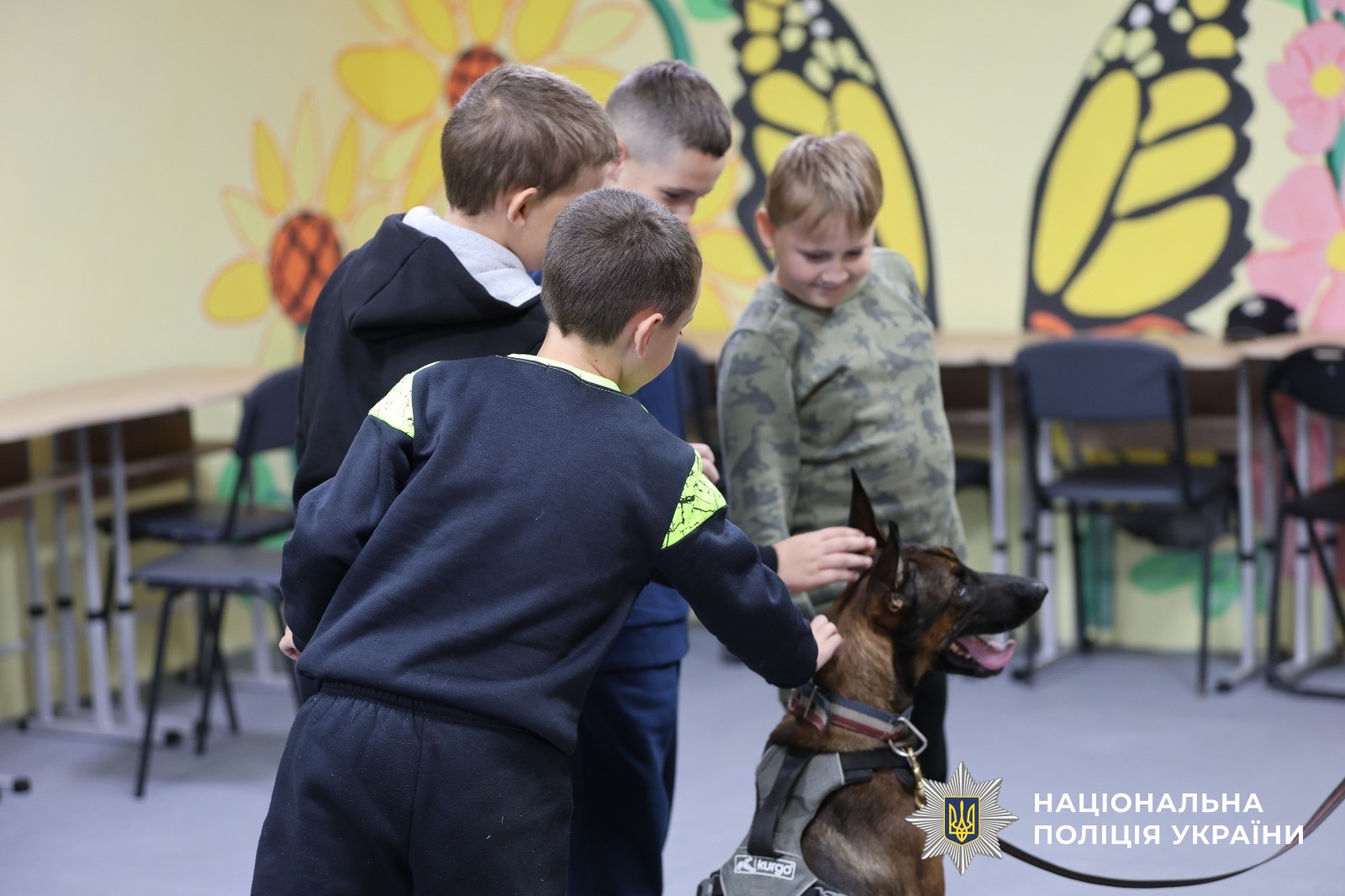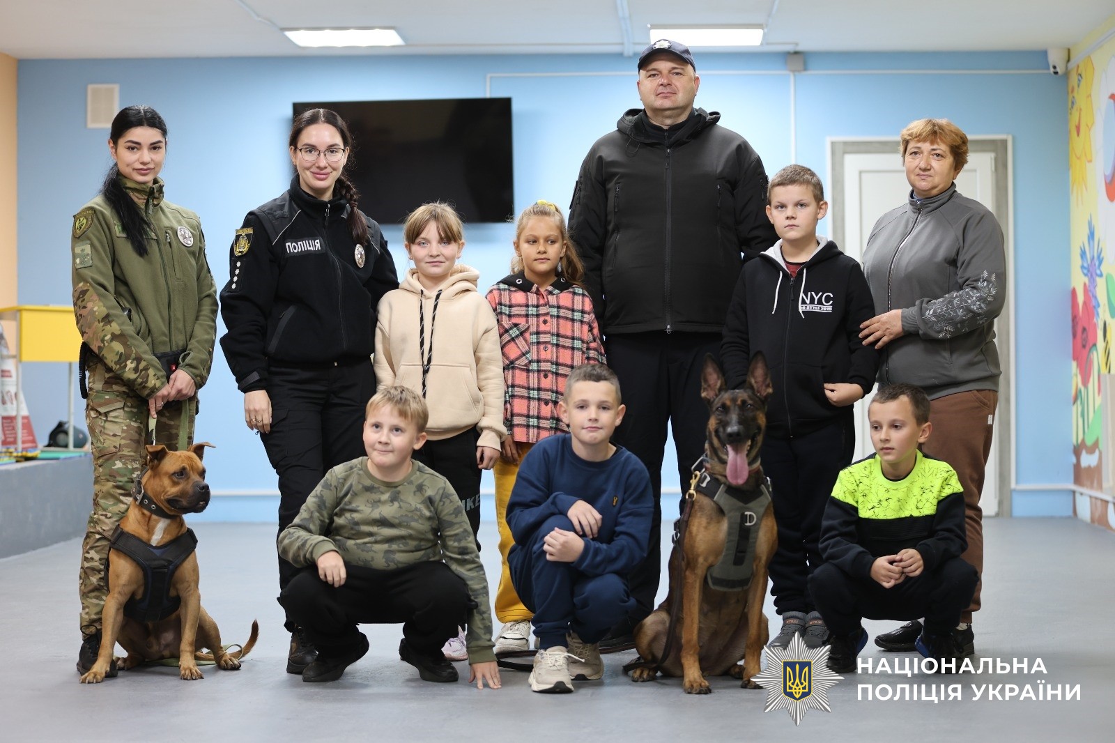 Службові собаки поліції Джексон і Келлі подарували дітям із прифронтової громади Херсонщини тепло і радість