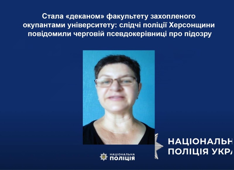 Стала «деканом» факультету захопленого окупантами університету: слідчі поліції Херсонщини повідомили черговій псевдокерівниці про підозру