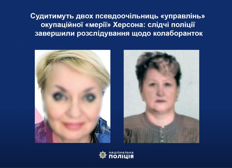 Дві жительки обласного центру під час окупації Херсона добровільно погодилися співпрацювати з представниками країни-агресора. Обидві фігурантки очолили псевдоуправління окупаційної «мерії». Наразі поліцейські зібрали достатньо доказів антиукраїнської діяльності зловмисниць та скерували обвинувальні акти щодо них на розгляд суду.