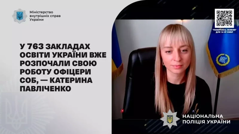 У 763 закладах освіти України вже розпочали свою роботу офіцери СОБ – Катерина Павліченко