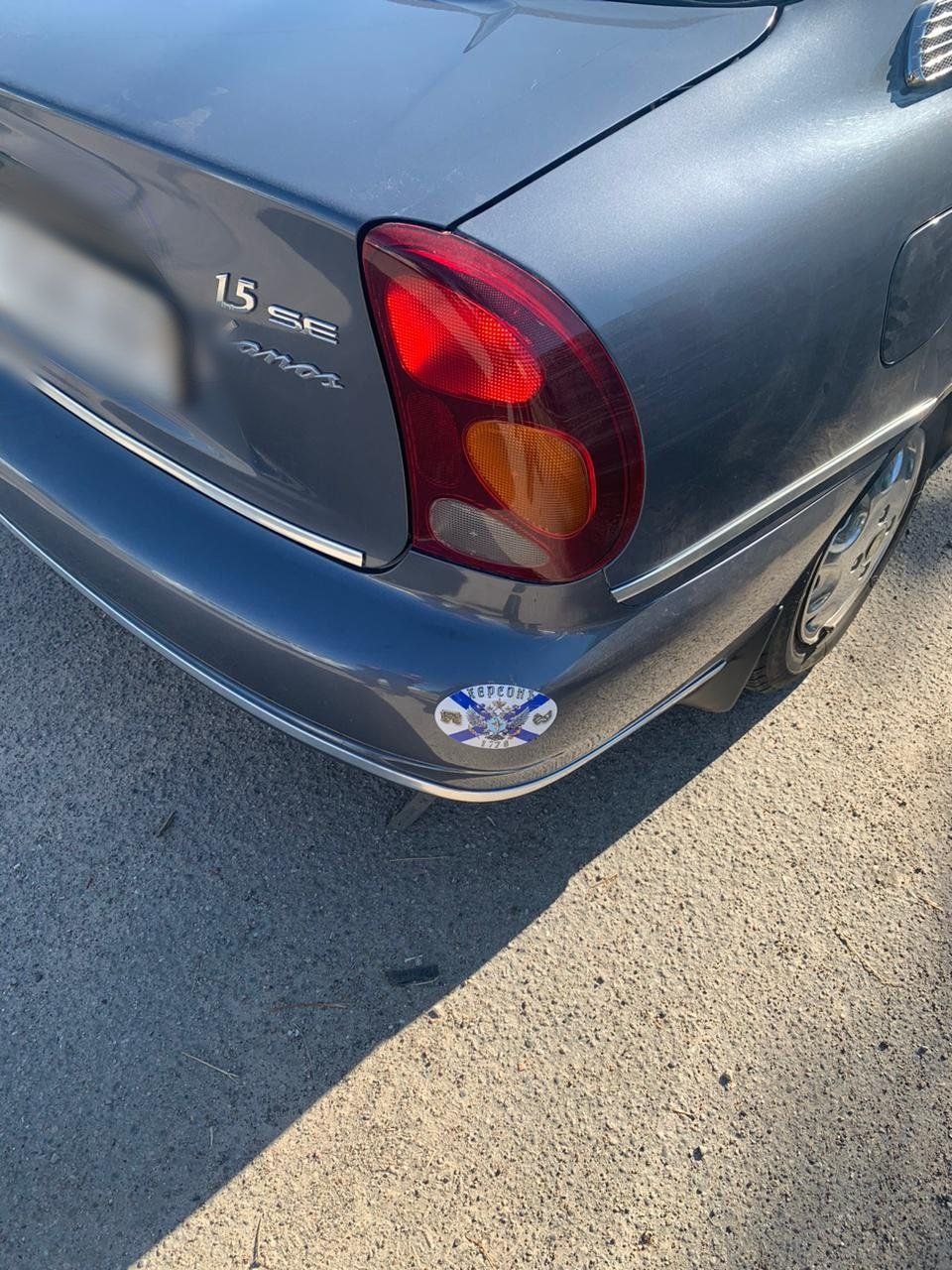 Вказаний «ЗАЗ-Ланос» працівники патрульної поліції помітили та зупинили на одній з вулиць Херсона. На автомобілі інспектори дійсно побачили наклеєні на бампері прапор та герб країни-агресора з надписом «ХерсонЬ».
