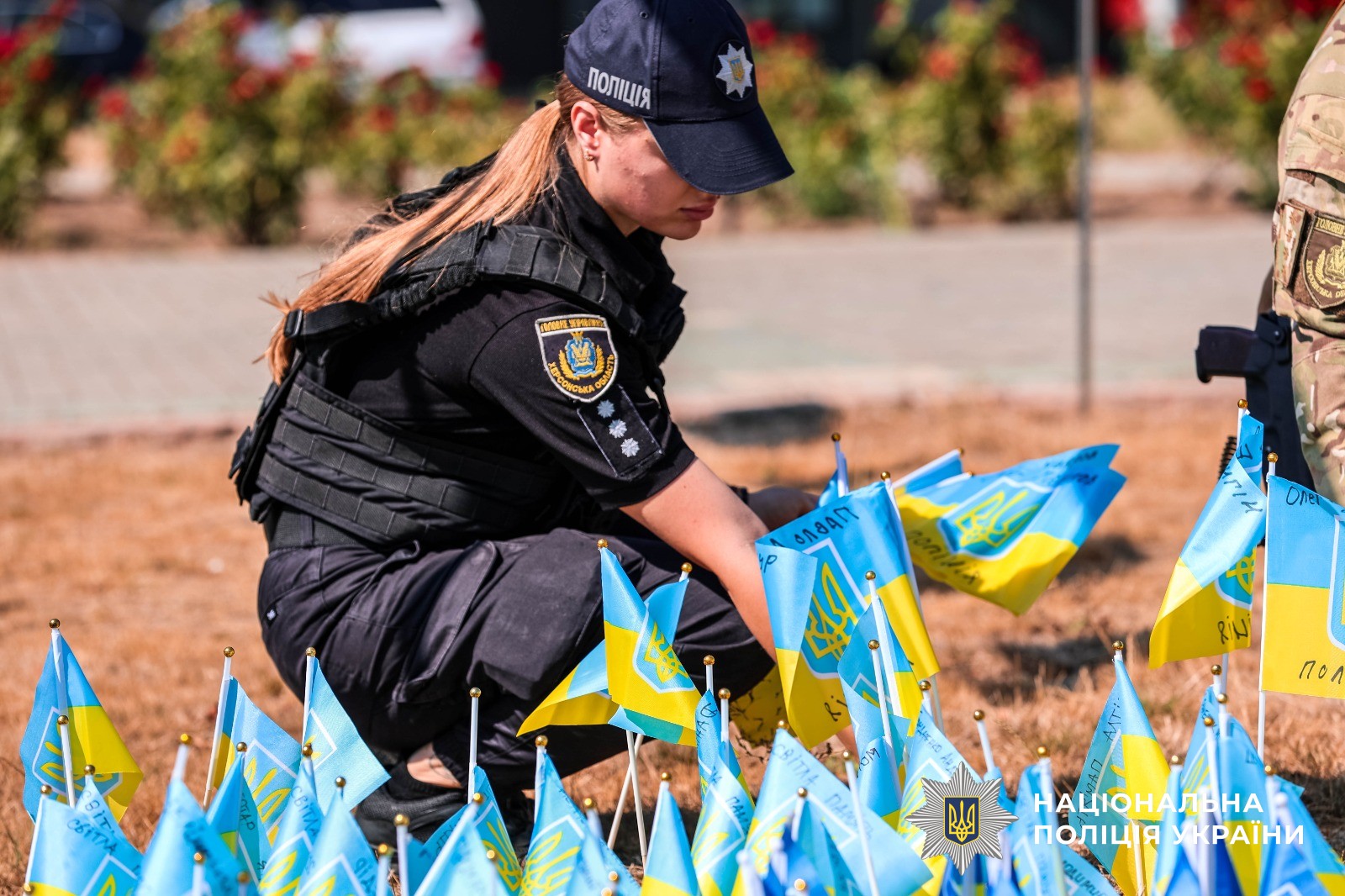 У Херсоні на острівці пам'яті загиблих на війні захисників України з’явилися прапорці з іменами 15 полеглих героїв-поліцейських